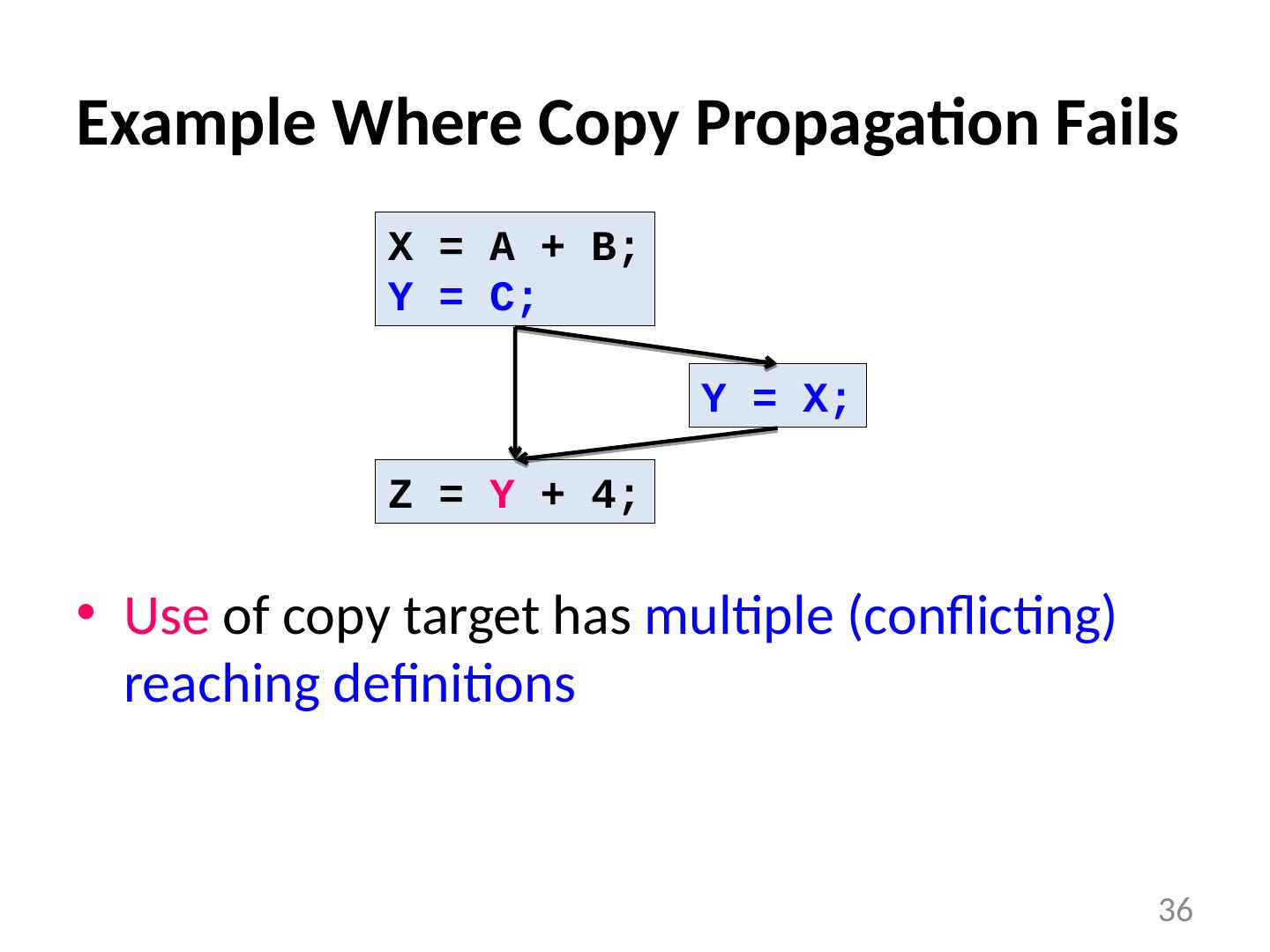 12 .Merge 12 Example (Revisited) A = ... (A 1 ) IF A goto L1 L1: C = ... (C 1 ) = A D = ... (D 1 ) B = ... (B 1 ) = A D = B (D 2 ) A = 2 (A 2 ) = A ret D {} {} {A} {A 1 } {A} {A 1 } {A} {A 1 } {A,B} {A 1 ,B 1 } {B} {A 1 ,B 1 } {D} {A 1 ,B 1 ,D 2 } Live Variables Reaching Definitions {A} {A 1 } {A,C} {A 1 ,C 1 } {C} {A 1 ,C 1 } {D} {A 1 ,C 1 ,D 1 } {D} {A 1 ,B 1 ,C 1 ,D 1 ,D 2 } {A,D} {A 2 ,B 1 ,C 1 ,D 1 ,D 2 } {A,D} {A 2 ,B 1 ,C 1 ,D 1 ,D 2 } {D} {A 2 ,B 1 ,C 1 ,D 1 ,D 2 }