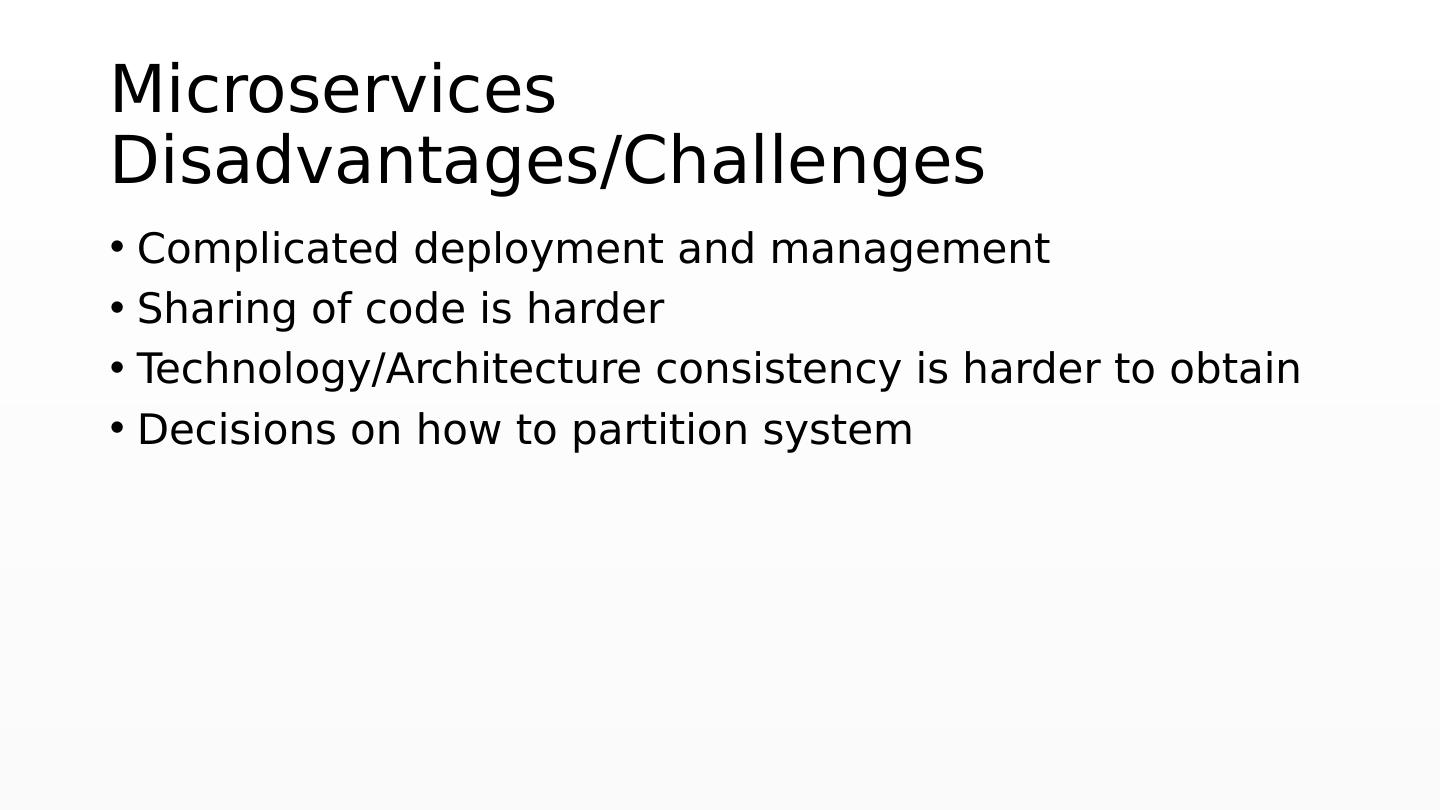 28 .Microservices Disadvantages/Challenges Complicated deployment and management Sharing of code is harder Technology/Architecture consistency is harder to obtain Decisions on how to partition system