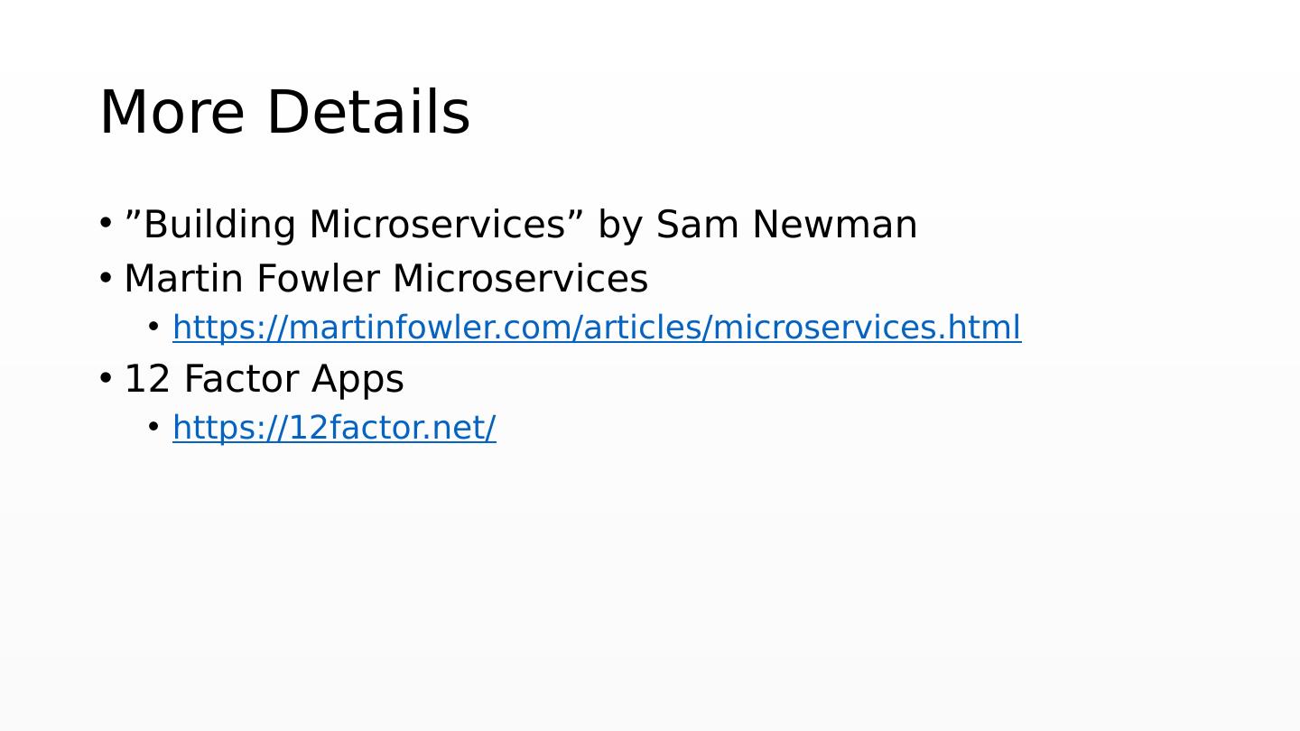 29 .More Details ”Building Microservices ” by Sam Newman Martin Fowler Microservices https://martinfowler.com/articles/microservices.html 12 Factor Apps https://12factor.net/