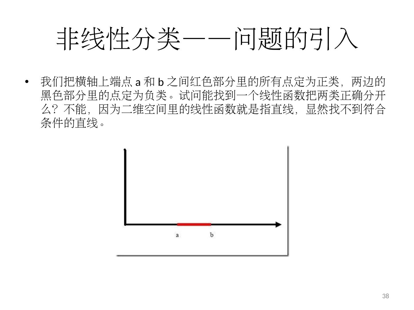 15 .线性 函数? 在一维空间里就是一个 点 在二维空间里就是一条 直线 在 三维空间 里就是一个 平面 …… 如果不关注空间的维数,这种线性函数还有一个统一的名称 —— 超平面 (Hyper Plane) 15