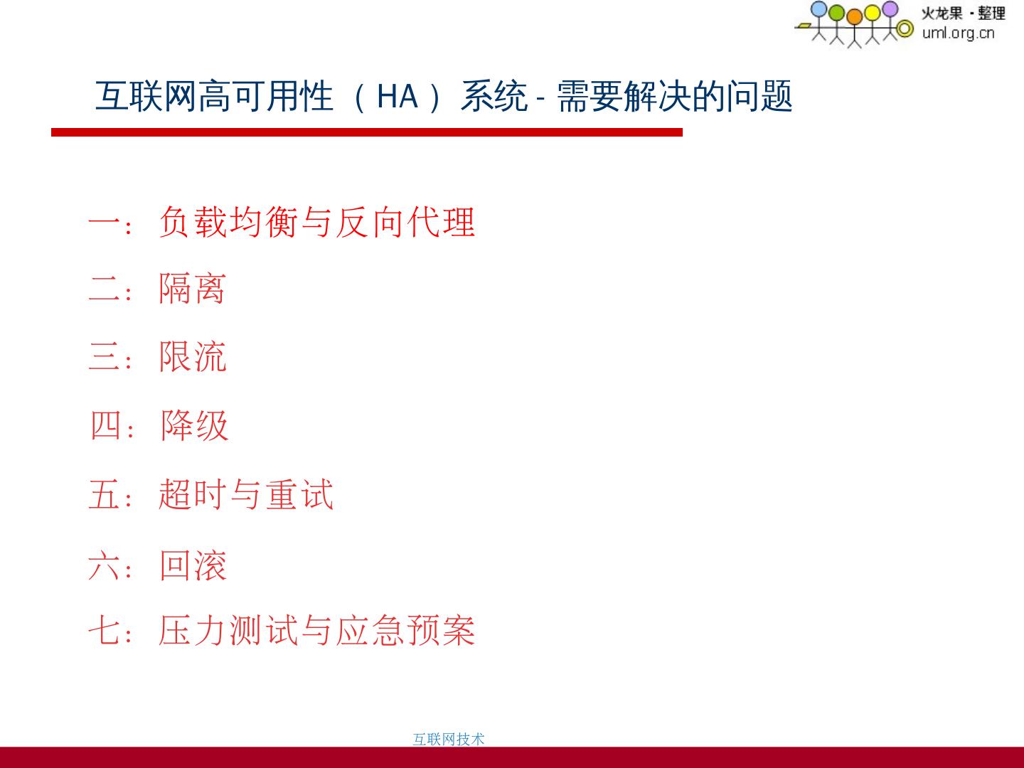 29 .互联网 高 可用性(HA)系统 - 需要解决的问题 一 :负载均衡与反向代理 二 :隔离 三 :限流 四 :降级 五:超时与重试 六:回滚 七:压力测试与应急预案
