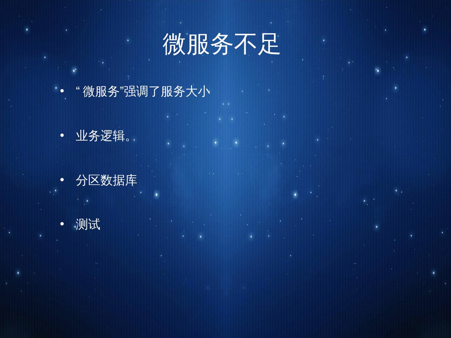 25 .微服务不足 “微服务”强调了服务大小 业务逻辑。 分区数据库 测试