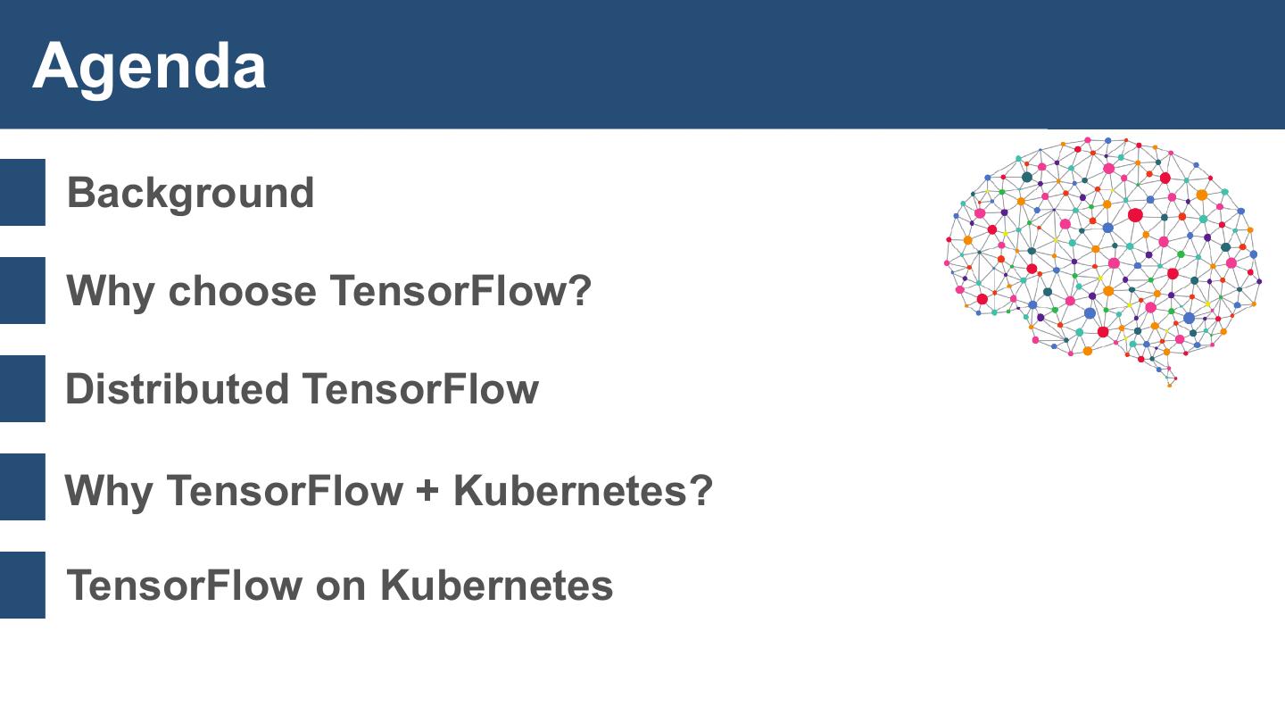 3 .Agenda Background Why choose TensorFlow? Distributed TensorFlow Why TensorFlow + Kubernetes? TensorFlow on Kubernetes