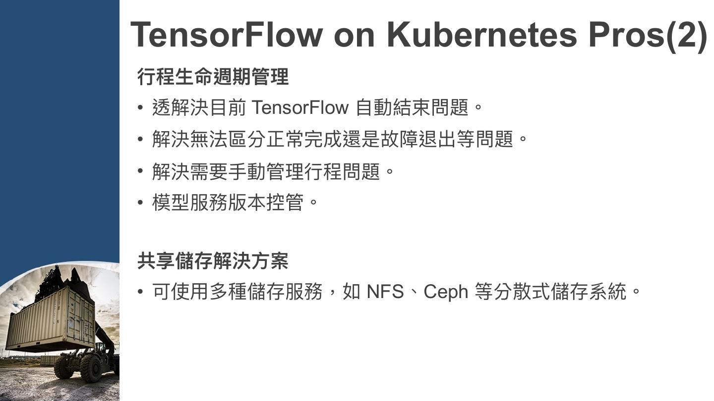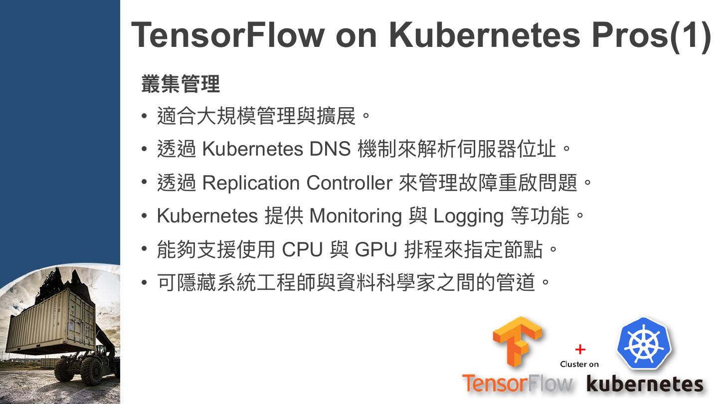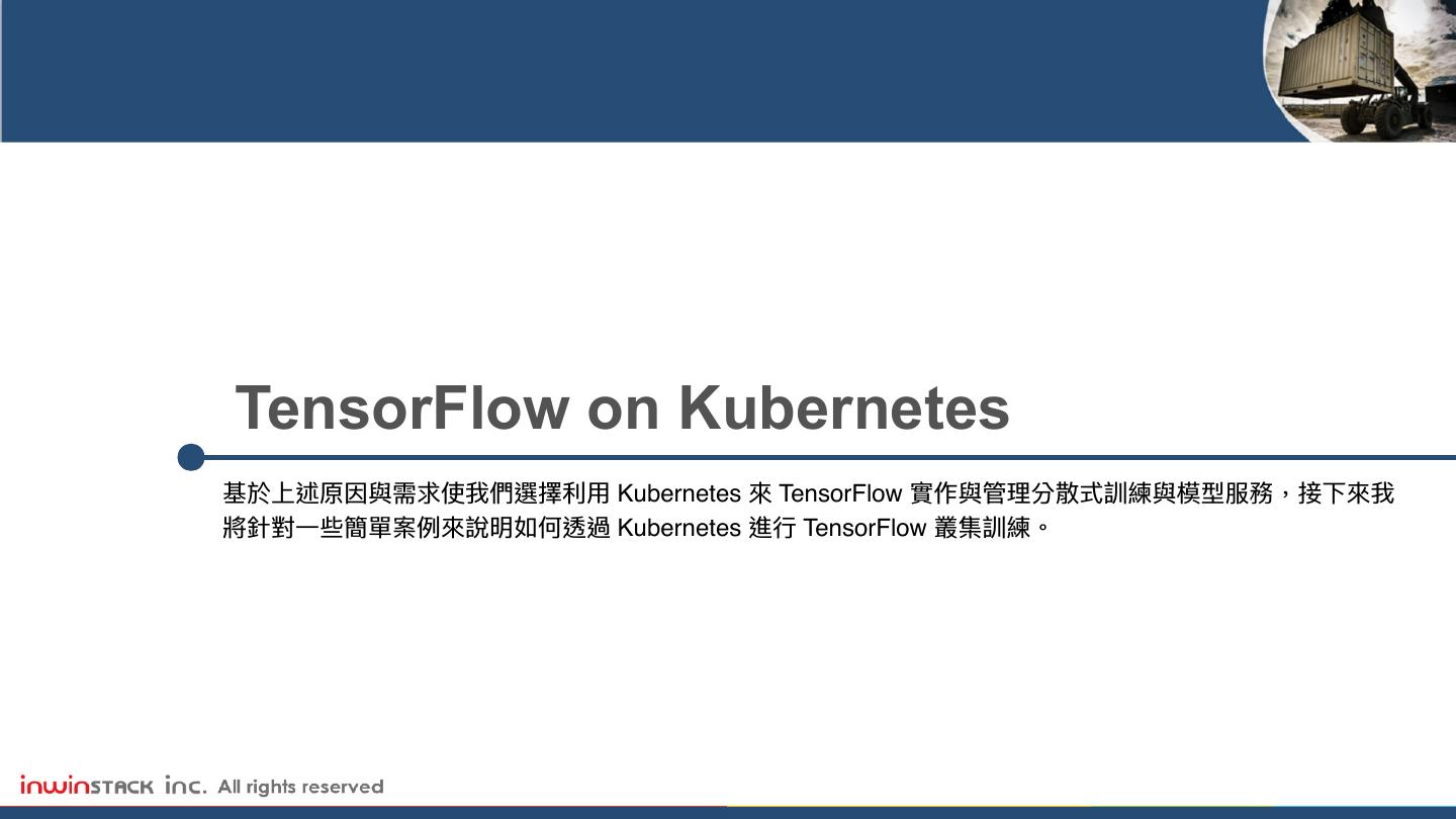 1 .利利⽤用 Kubernetes 實作 TensorFlow 分散式訓練與模 型服務分享 2017.07.18 Kyle Bai