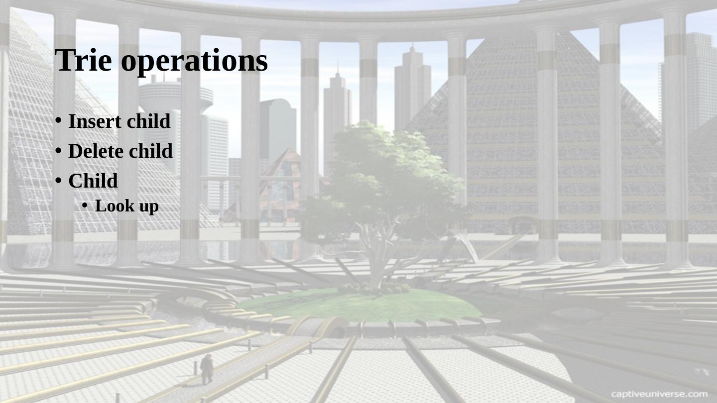 3 .Trie Special type of tree re trie val Dynamic sets Key is a string Root node is an empty string