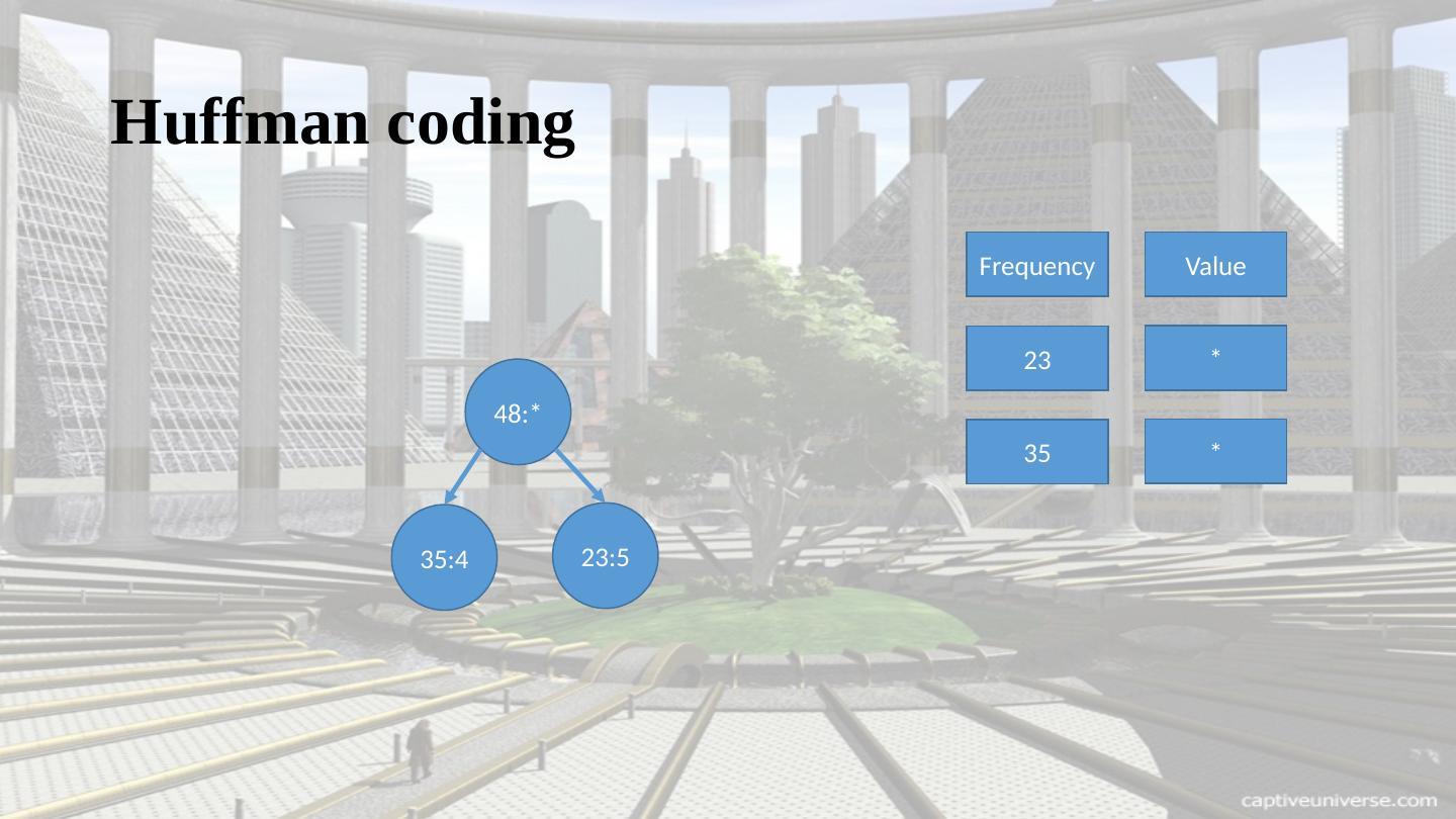 15 .Huffman coding Frequency Value 23 * 23:5 35:4 48:* 35 *