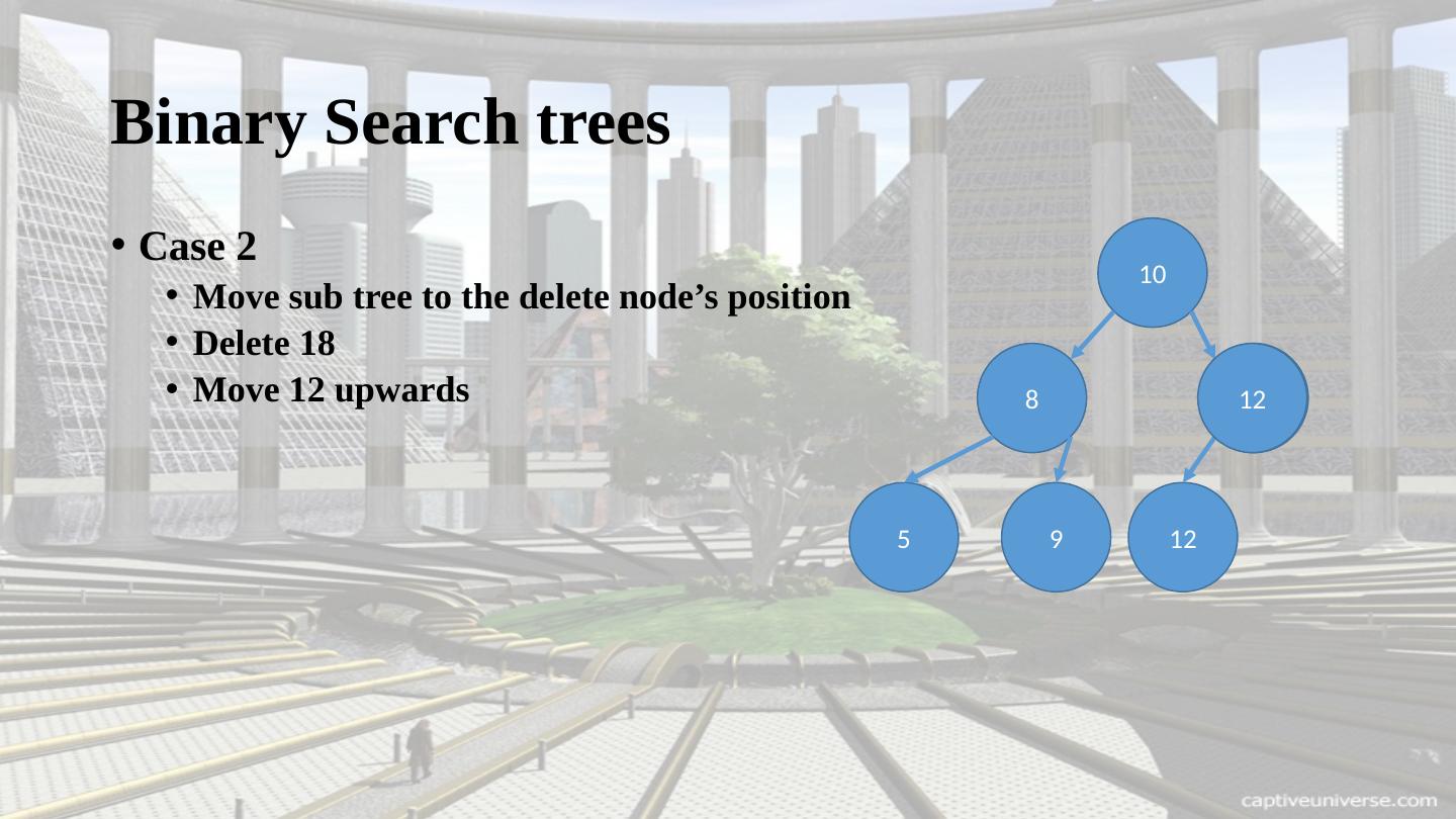 27 .Binary Search trees Case 2 Move sub tree to the delete node’s position Delete 18 Move 12 upwards 10 8 18 5 9 12 12