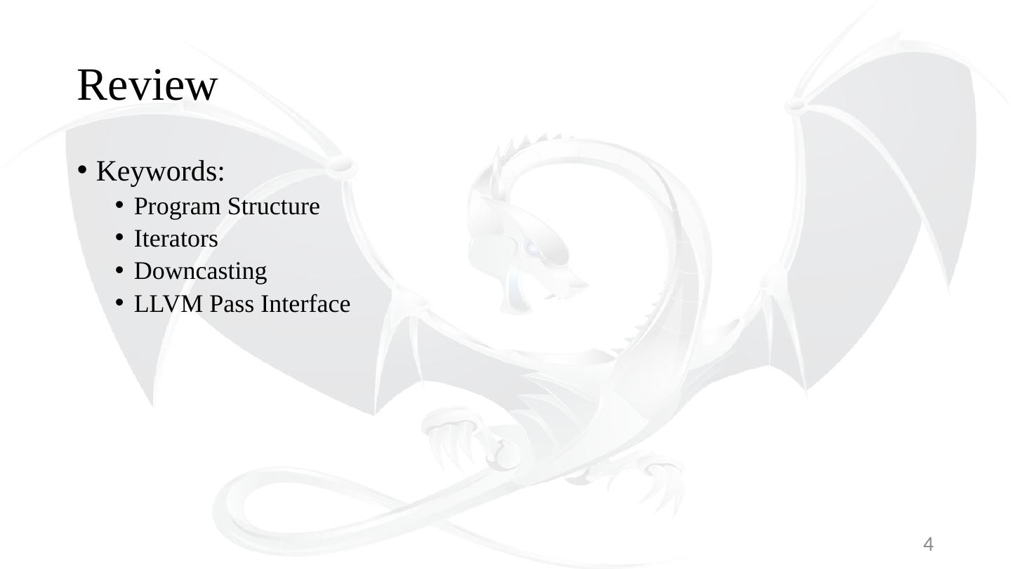 4 .Review Keywords: Program Structure Iterators Downcasting LLVM Pass Interface 4