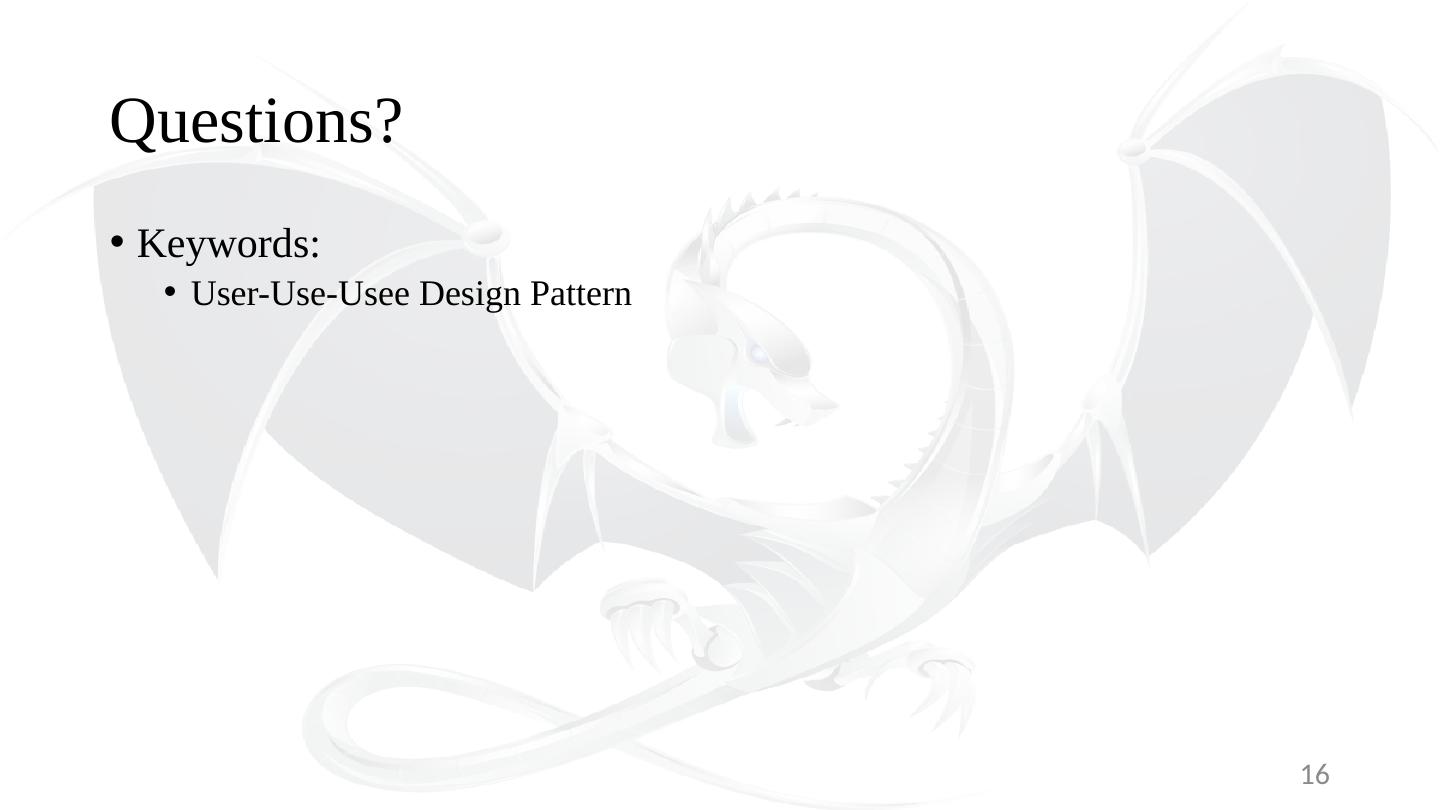 16 .Questions? Keywords: User-Use- Usee Design Pattern 16