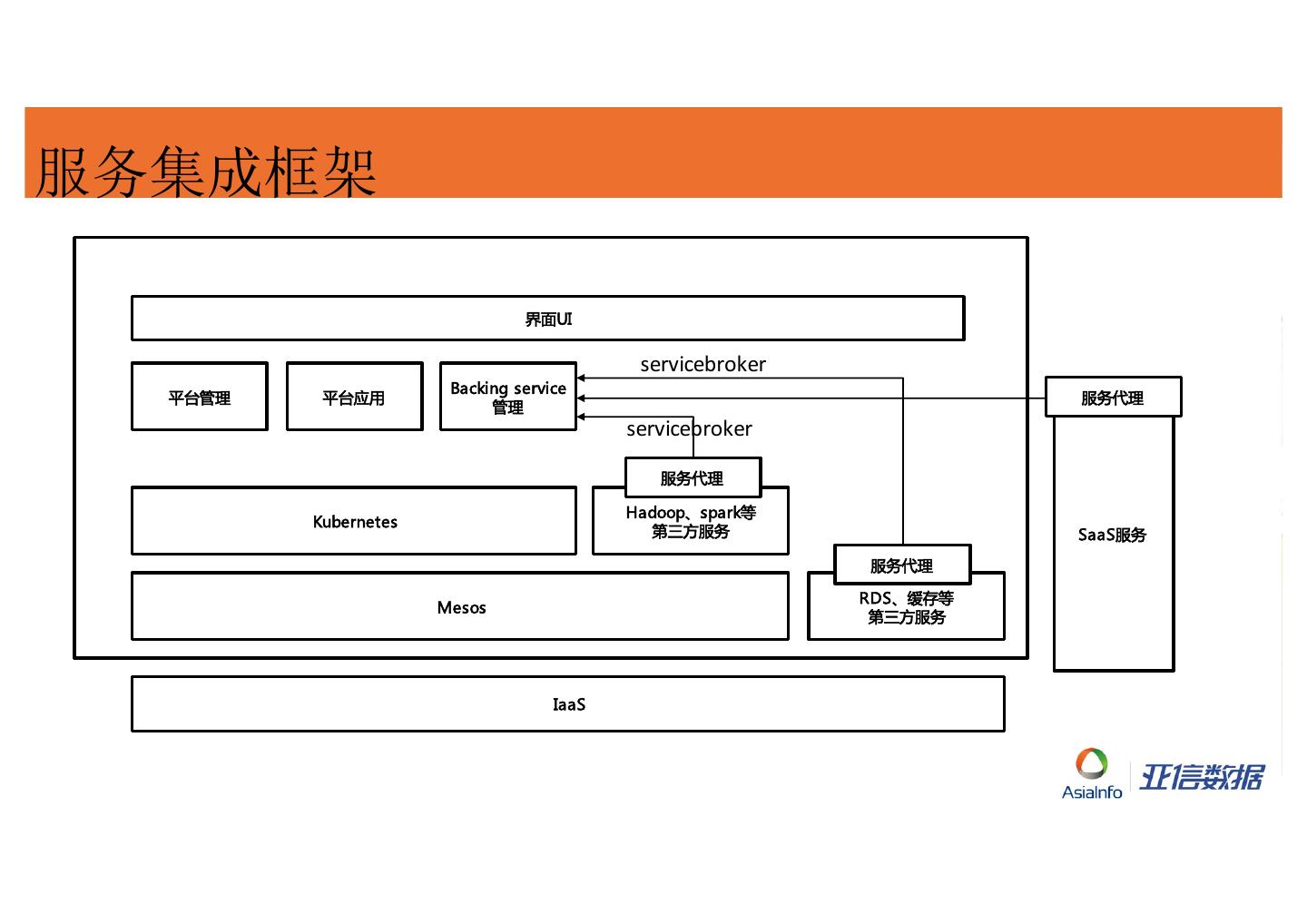 21 .服务集成框架 界面UI servicebroker Backing service 平台管理 平台应用 服务代理 管理 servicebroker 服务代理 Hadoop、spark等 Kubernetes 第三方服务 SaaS服务 服务代理 RDS、缓存等 Mesos 第三方服务 IaaS