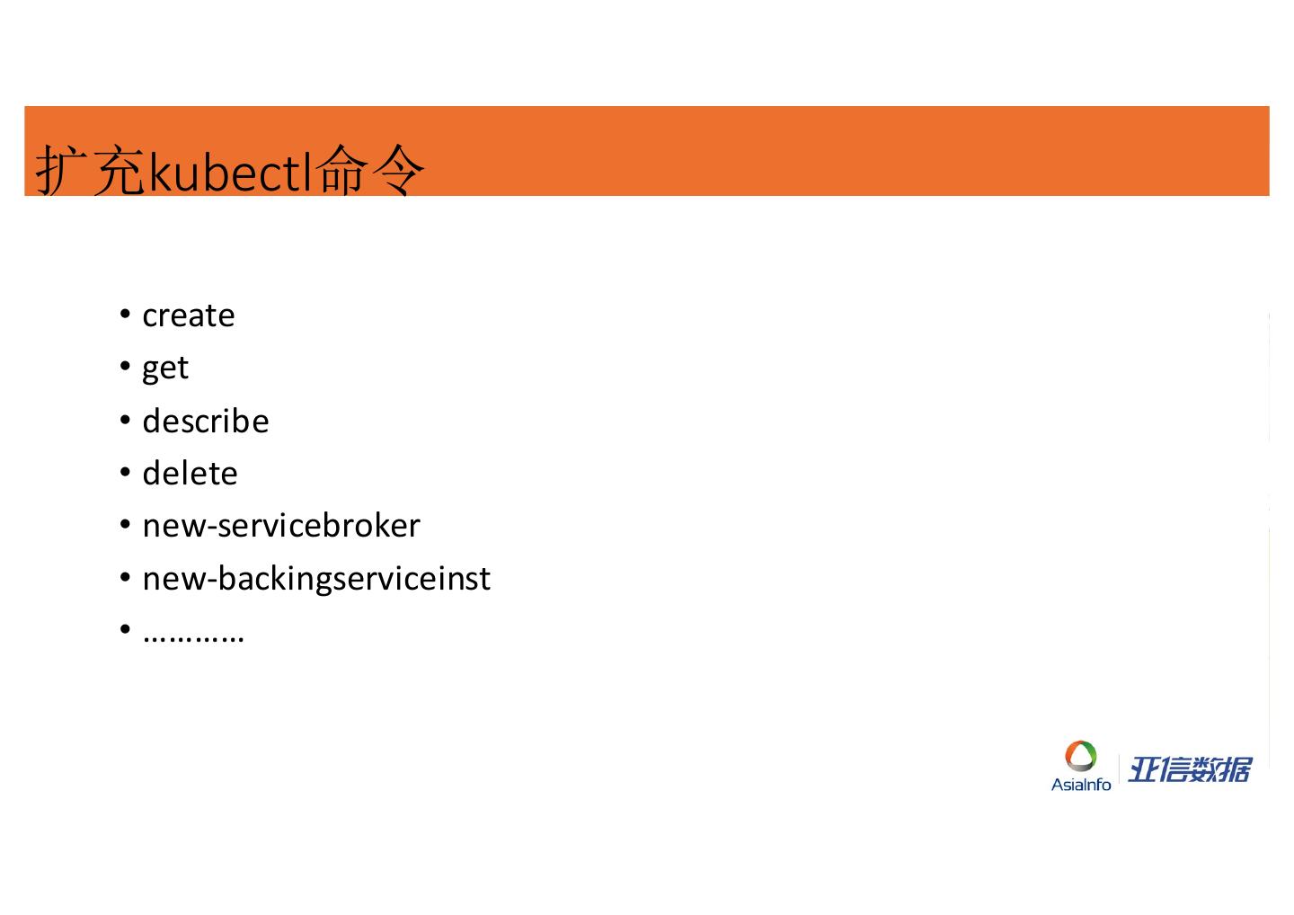 23 .扩充kubectl命令 • create • get • describe • delete • new-‐servicebroker • new-‐backingserviceinst • …………