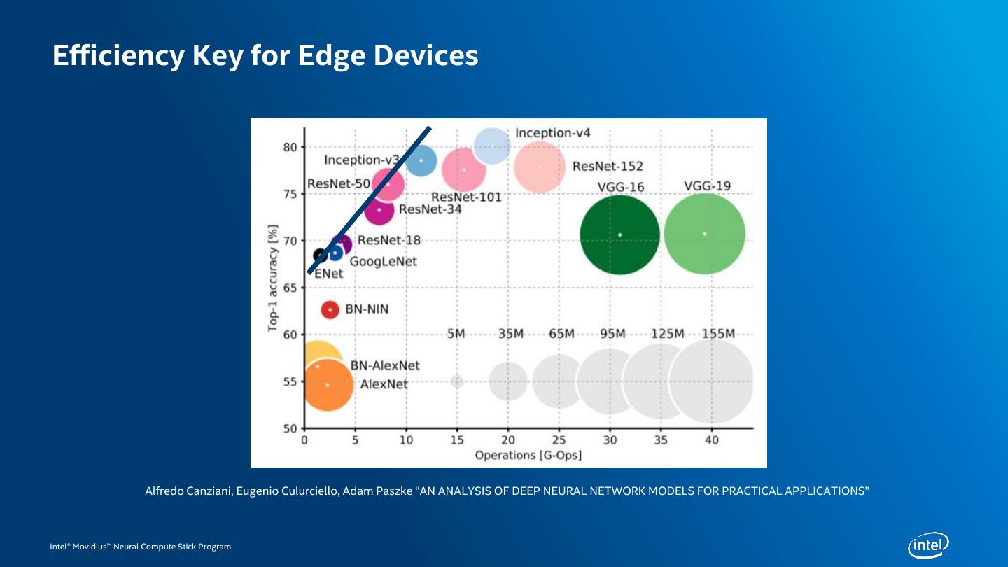 12 .Efficiency Key for Edge Devices Alfredo Canziani, Eugenio Culurciello, Adam Paszke “AN ANALYSIS OF DEEP NEURAL NETWORK MODELS FOR PRACTICAL APPLICATIONS” Intel® Movidius™ Neural Compute Stick Program