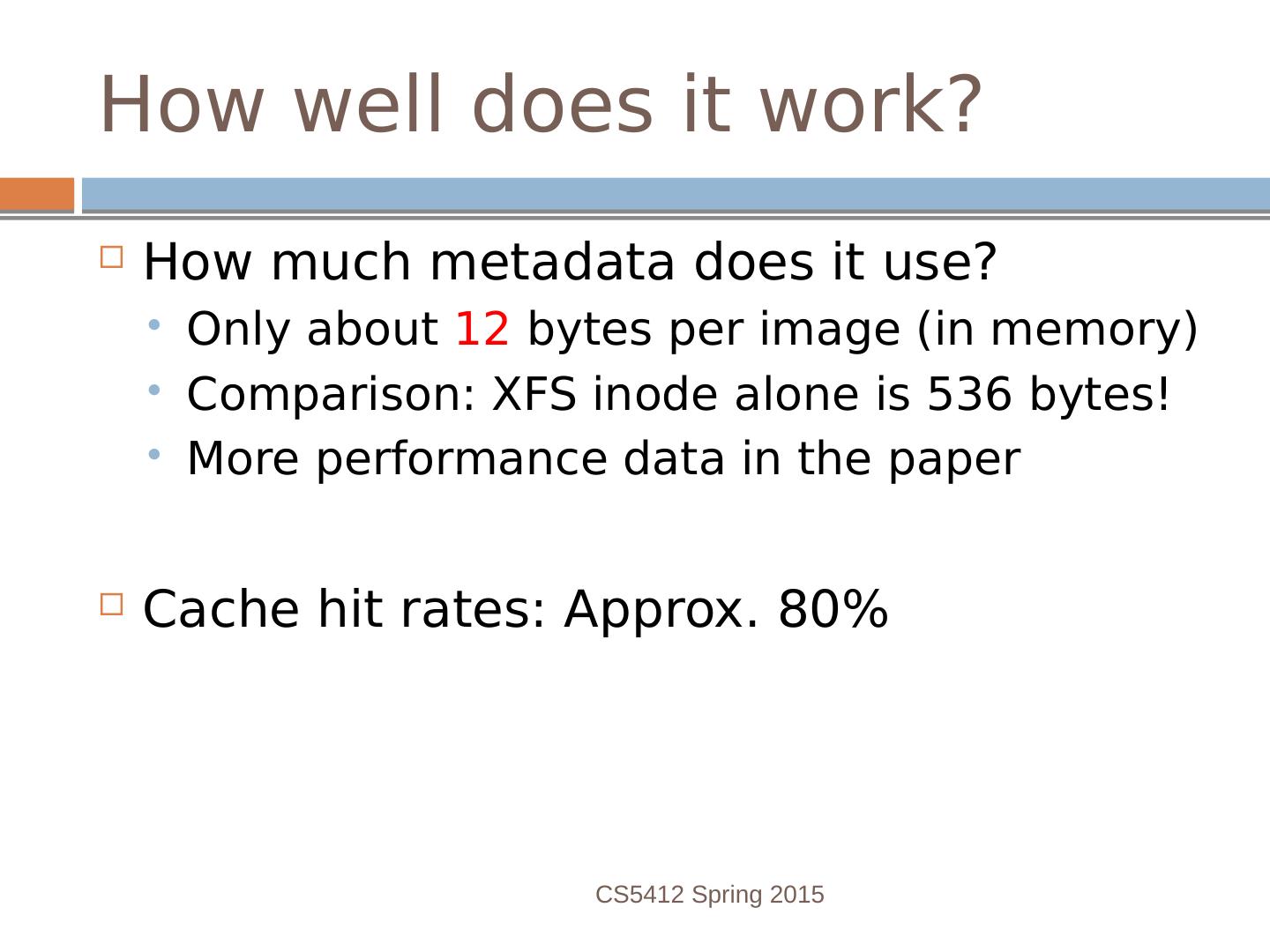 15 .Facebook cache effectiveness Existing caches are very effective... ... but different layers are more effective for images with different popularity ranks CS5412 Spring 2015