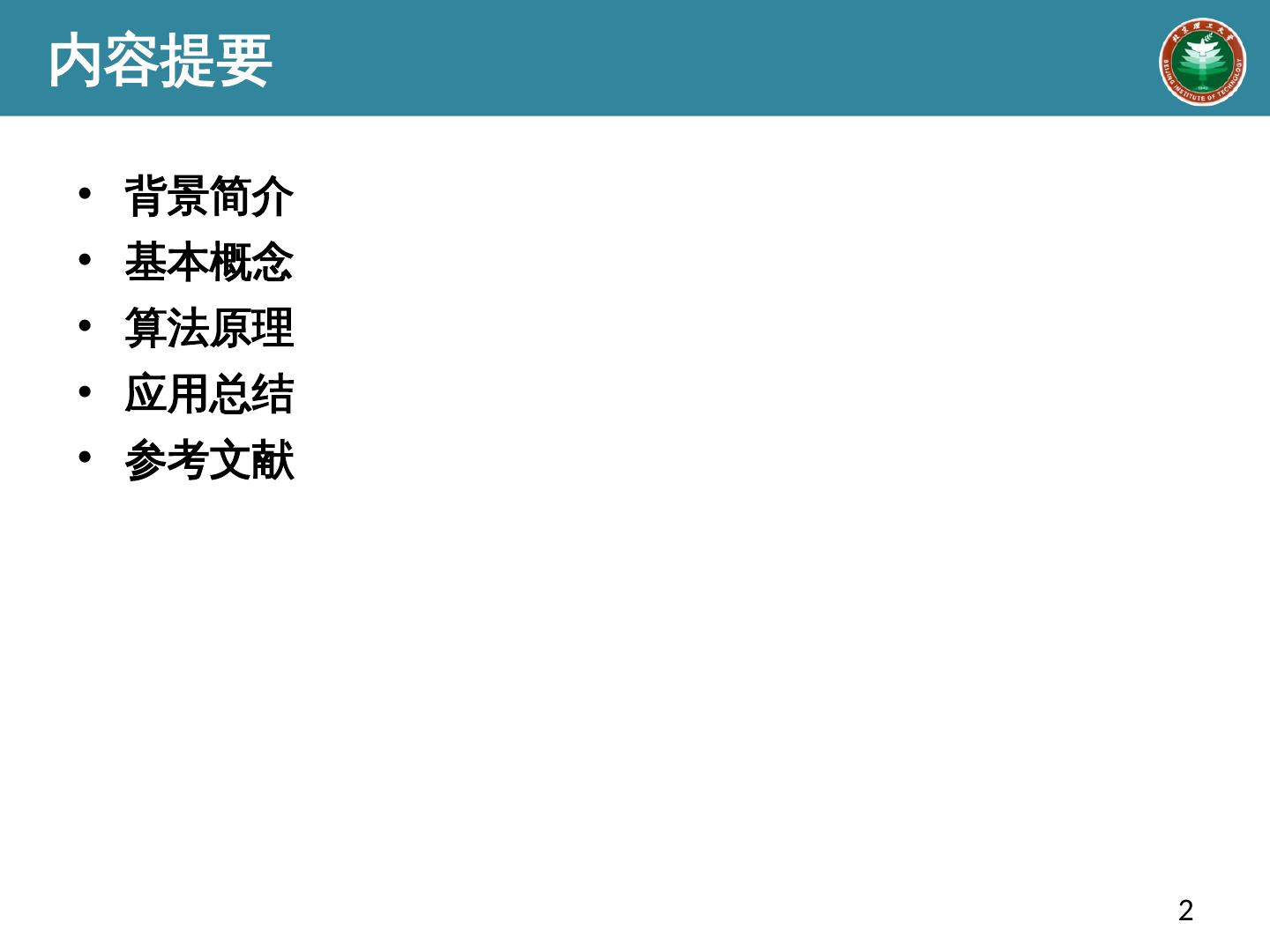2 .内容提要 背景简介 基本概念 算法原理 应用总结 参考 文献 2