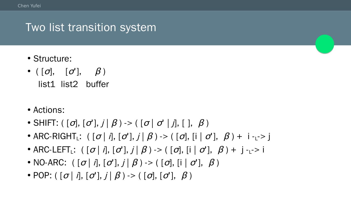 24 .Two list transition system: action claassifier 1. Kiperwasser E, Goldberg Y. Simple and Accurate Dependency Parsing Using Bidirectional LSTM Feature Representations. Acl. 2016;4:313-327. http://arxiv.org/abs/1603.04351.