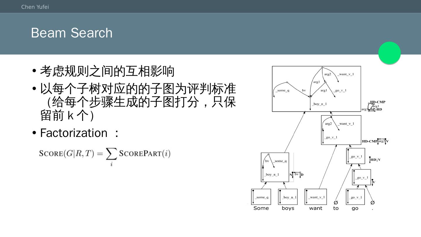 9 .语义依存分析 分析方法和依存分析类似 基于状态转移的方法: 基本模式: 将建立一个依存图分成许多步,每步基于之前构造好的部分子图,决定剩余的子图应该如何构建。