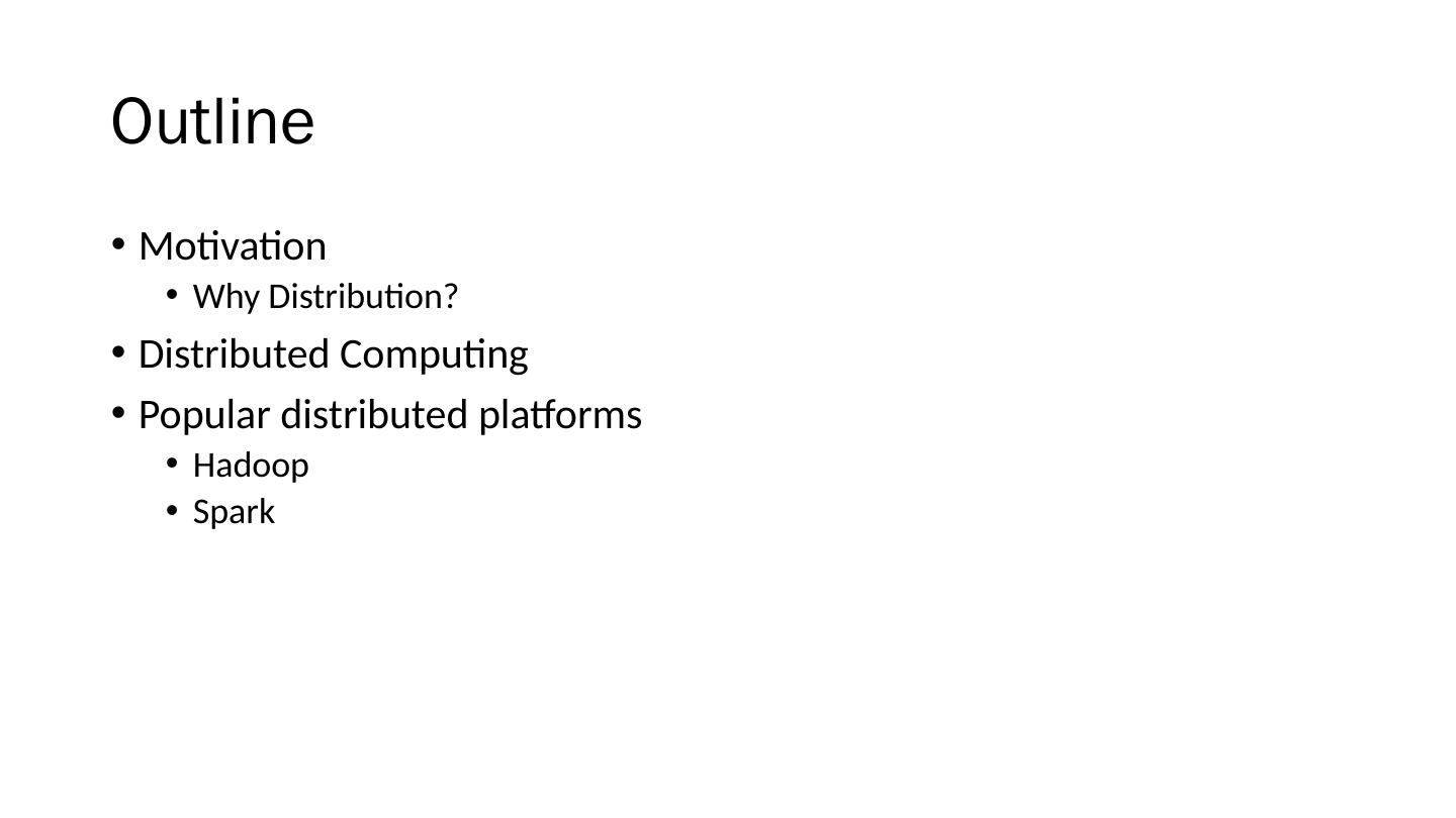 2 .Outline Motivation Why Distribution? Distributed Computing Popular distributed platforms Hadoop Spark