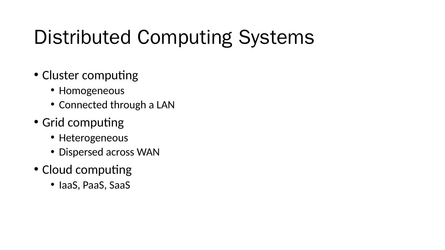 12 .Distributed Computing Systems Cluster computing Homogeneous Connected through a LAN Grid computing Heterogeneous Dispersed across WAN Cloud computing IaaS, PaaS, SaaS