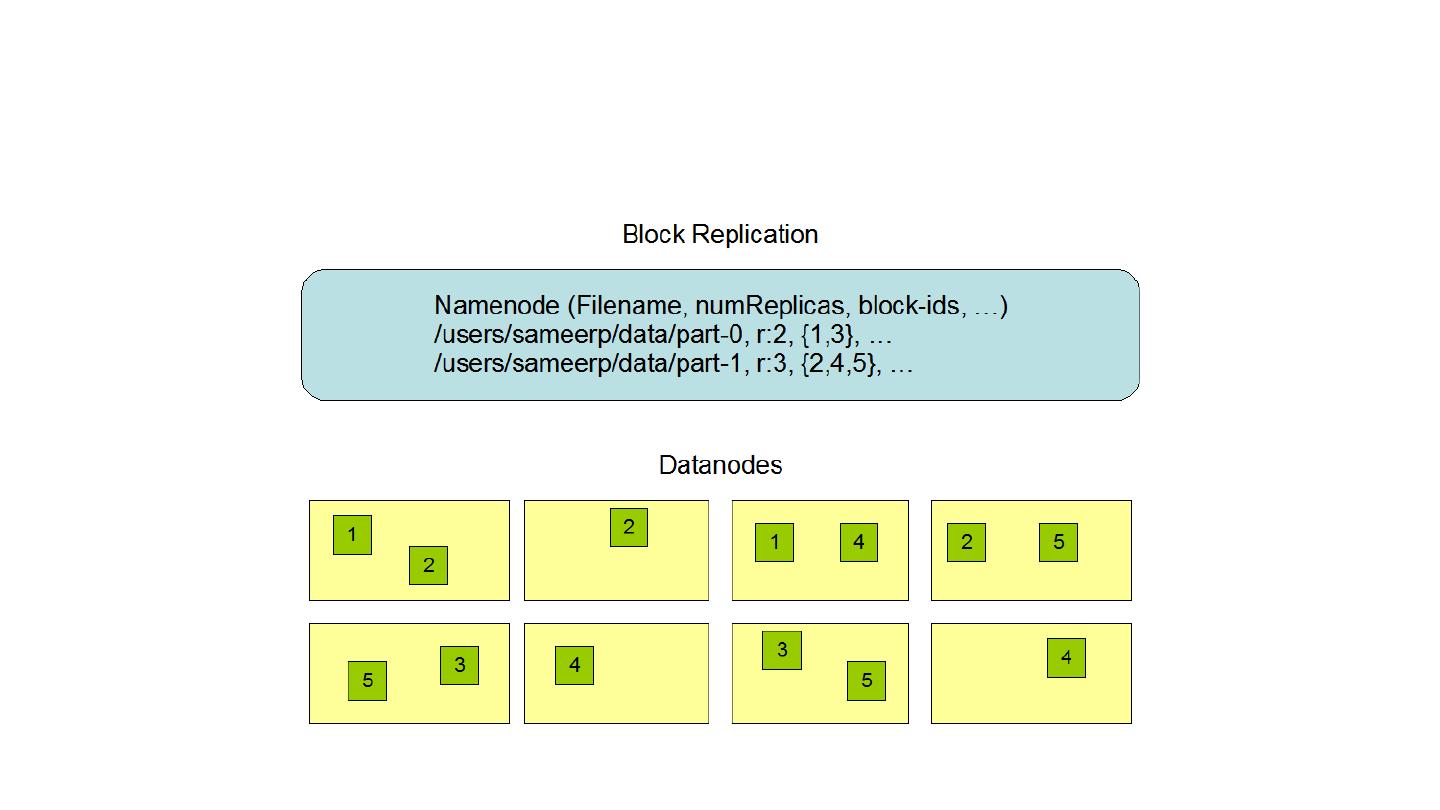 21 .Data Replication Each file as a sequence of blocks, which are replicated for fault tolerance Block size, replication factor: configurable All blocks except the last are the same size Files in HDFS are write-once (except for appends and truncates) and have strictly one writer at any time NameNode makes all decisions regarding replication of blocks It periodically receives a Heartbeat and a Blockreport from each of the DataNodes
