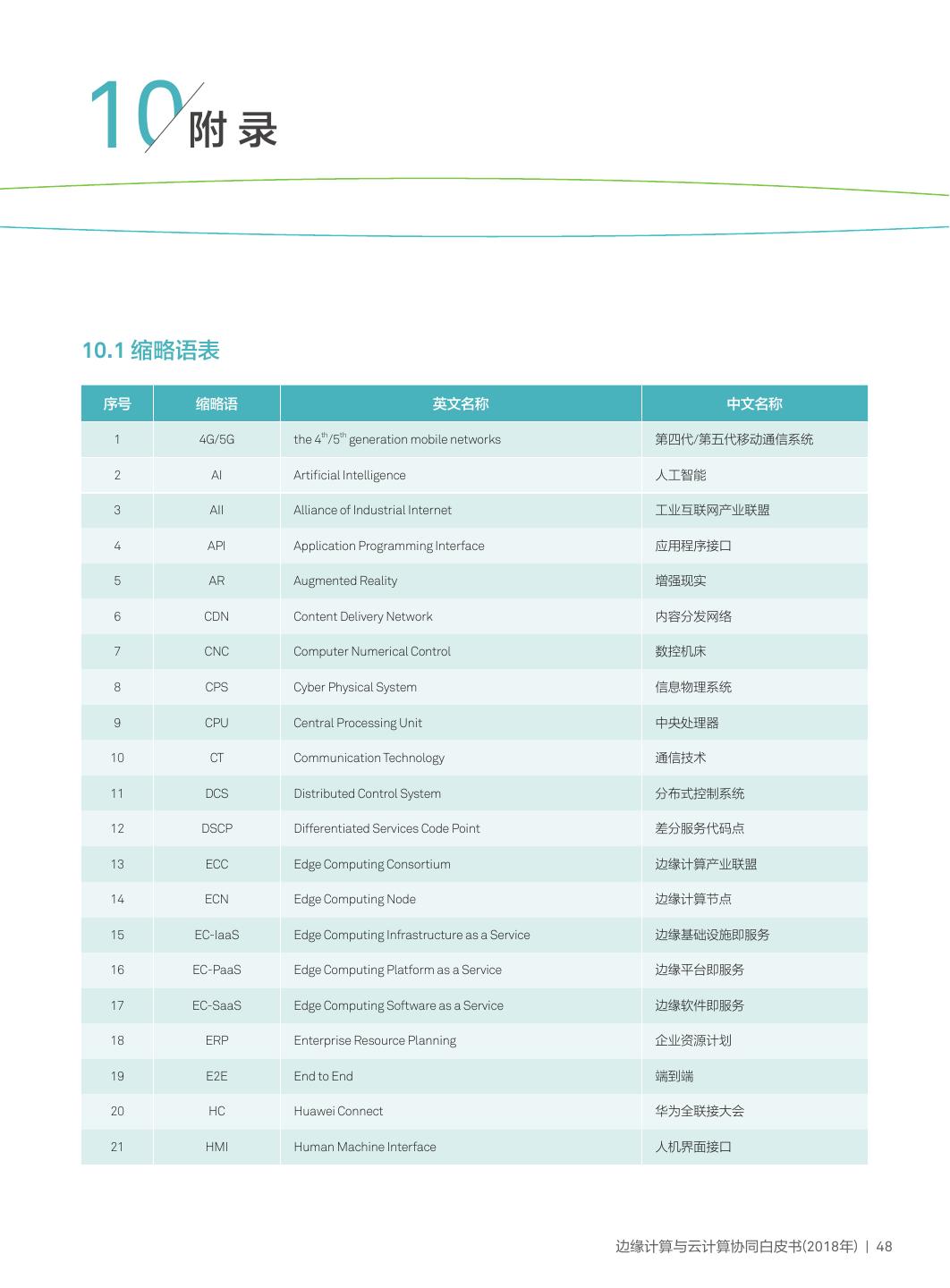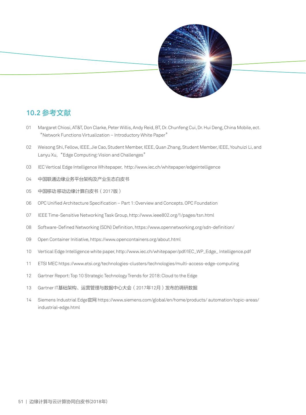 3 .1 边云协同放大边缘计算与云计算价值 ..... 1 6 智慧家庭边云协同主场景 ............ 29 1.1 边缘计算概念 ............................................... 1 6.1 智慧家庭网络子场景 ...........................29 1.2 边缘计算CROSS价值 .................................... 2 6.2 智慧家庭增值服务子场景 .....................31 1.3 边云协同放大边缘计算与云计算价值 ............... 3 6.3 关键技术 ...........................................32 1.4 白皮书目标 .................................................. 4 6.4 案例 ..................................................33 2 边云协同总体内涵与参考框架 ............... 6 7 广域接入网络边云协同主场景 ...... 34 2.1 边云协同总体能力与内涵 ............................... 6 7.1 多业务接入子场景 ..............................34 2.2 边云协同总体参考架构 .................................. 7 7.2 增值网络业务子场景 ...........................35 7.3 关键技术 ...........................................36 3 边云协同价值场景 ............................... 8 7.4 案例 ..................................................37 3.1 边缘计算分类 ............................................... 8 3.2 边云协同主要价值场景 .................................. 9 8 边缘云的边云协同主场景 ............ 38 8.1 边缘云联接子场景 ..............................38 4 物联网边云协同主场景 ....................... 10 8.2 边缘云智能与增值子场景 .....................39 4.1 物联网联接子场景 .......................................10 8.3 关键技术 ...........................................40 4.2 物联网增值服务子场景 .................................12 8.4 案例 ..................................................41 4.3 物联网系统控制子场景 .................................13 4.4 关键技术 ....................................................15 9 MEC边云协同主场景 .................. 42 4.5 案例 ...........................................................17 9.1 本地分流子场景..................................42 9.2 网络能力开放子场景 ...........................44 5 工业边云协同主场景 .......................... 19 9.3 关键技术 ...........................................45 5.1 设备优化子场景...........................................19 9.4 案例 ..................................................46 5.2 工艺过程优化子场景 ....................................21 5.3 工厂全价值链优化子场景 ..............................23 10 附录 ........................................ 48 5.4 关键技术 ....................................................24 10.1 缩略语表 .........................................48 5.5 案例 ...........................................................25 10.2 参考文献 .........................................51