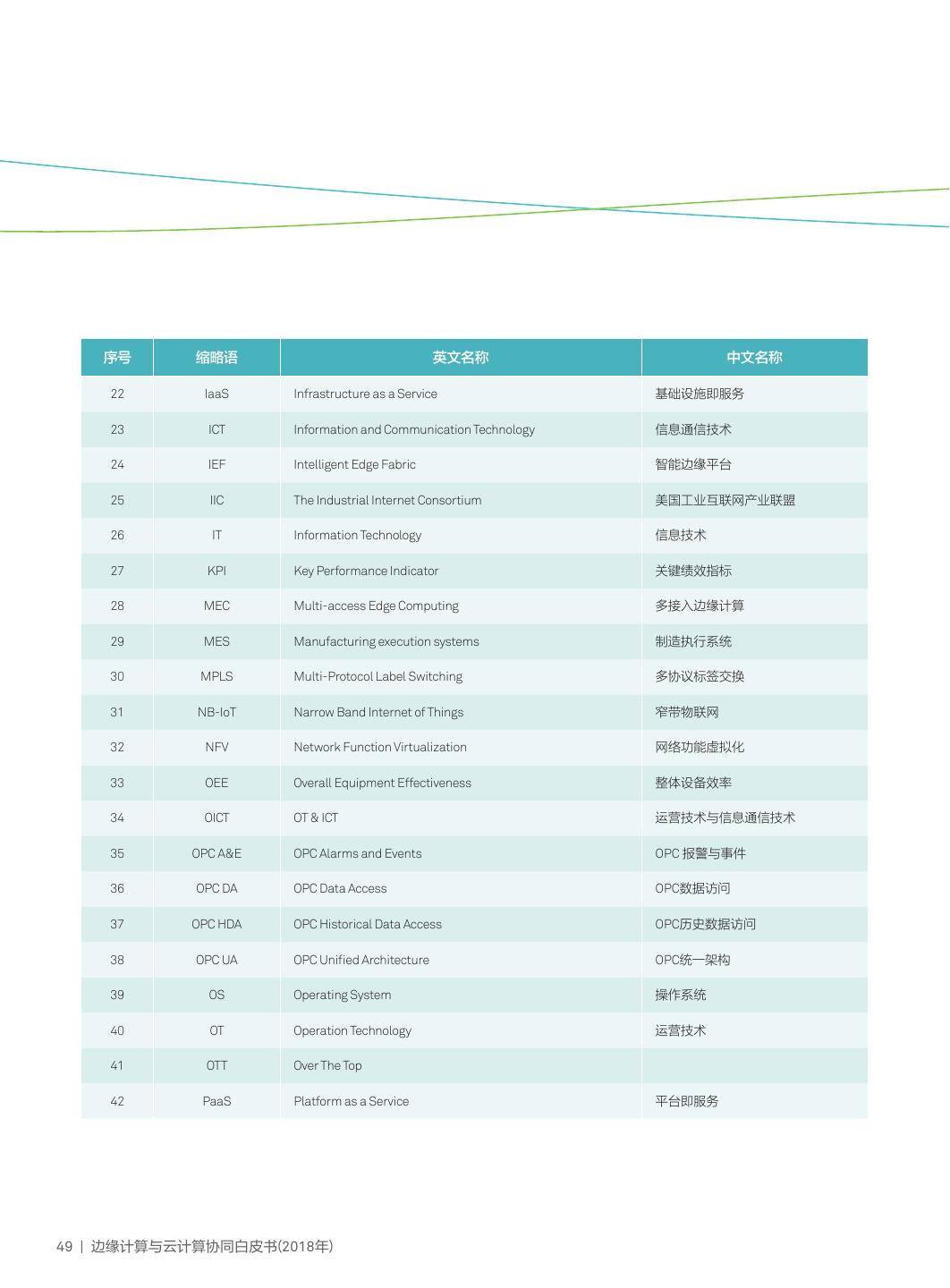 18 . 4.4 关键技术 针对物联网边云协同的物联网联接、物联网增值 PLC-IoT 服务、物联网系统控制三类子场景,需要网络连接类 PLC-IoT是面向物联网场景的PLC (Power Line (TSN、OPC UA over TSN、PLC-IoT、工业SDN等)、弹 Communication)技术,在电力线上提供高抗干扰的宽带 性基础设施类(边缘AI芯片、虚拟化技术等)、轻量级EC- 通信能力。相较于传统窄带PLC技术,如G3、PRIME等 PaaS类(流分析、AI、设备建模、数据与应用生命周期管 PLC,PLC-IoT有效应对各类噪声干扰,极大的提升了电力 理)关键技术支撑。 线载波的通信可靠性,同时提供2Mbps以上的通信带宽, 从而支持了更丰富的应用场景和业务。 PLC-IoT基于电力线载波通信,在有源场景中应用无需 网络连接类 新的布线,将极大的降低传统系统的改造难度。 2018年5月,电力线通信(PLC)技术的标准IEEE901.1- OPC UA over TSN 2018正式发布。 OPC UA则解决不同系统之间的语义的互操作-包括应 用行为与动态功能。TSN(时间敏感网络)是新一代标准 工业SDN 的实时信息通信技术,在标准以太网技术的基础上,提供 工业SDN秉承OICT融合理念,在工业网络中引入SDN 信息在传输过程中端到端确定性的时延和抖动。OPC UA 理念,控制面和转发面分离,转发面实现融合接入及与现 (OPC统一架构)解决不同系统之间的语义的互操作,涵 存工业网络的连接,控制面一方面对整体网络实现统一的 盖了OPC 实时数据访问规范 (OPC DA)、OPC历史数据访问 管理调度,一方面通过北向开放接口与工业控制系统互 规范 (OPC HDA)、 OPC 报警事件访问规范 (OPC A&E) 和 联,按照工业控制系统的需求(如带宽、实时、可靠等需 OPC安全协议 (OPC Security) 的不同方面。 求;柔性制造需要生产系统能够灵活调整,需要网络自动 当前工业总线及工业以太网存在碎片化的问题,极大 化支撑)灵活弹性的按需调度相关网络资源,从而实现对 的增加了客户建设及系统互联、互通、互操作成本,OPC 柔性制造的更好支撑。 UA over TSN推动解构传统工业烟囱式垂直网络向水平分布 式结构转变,为工业物联网及智能制造提供了低时延、高 确定性与真正开放互联通信网络,加强互联、互通、互操 弹性基础设施类 作,实现多系统协同,成为工业物联网与智能制造发展的 关键。 边缘AI芯片 OPC-UA产业发展成熟度较高,目前已经进入商业规 深度学习是实现人工智能(AI)的重要技术。深度学 模化推广阶段,TSN仍处于产业发展前期,预计3~5年进 习的过程分为模型训练和智能推理两个阶段,模型训练需 入商业规模化推广阶段。为了推动OPC UA over TSN的产 要大量的训练样本,基于梯度下降法,模型优化收敛到局 业发展,业界众多公司在该领域开展了积极有效的探索与 部最优点。深度学习的模型训练需要小时到天量级的迭代 推动,如华为联合信通院、和利时、B&R等20多家伙伴 优化,需要大量的算力,因而现阶段的模型训练一般都在 在2018年汉诺威工业展联合打造发布中国第一个OPC UA 云端完成。模型训练好之后,则能够基于该模型与输入数 over TSN测试床,在业界引起广泛关注。 据,计算得到输出完成智能推断。相比于模型训练,推断 15 | 边缘计算与云计算协同白皮书(2018年)