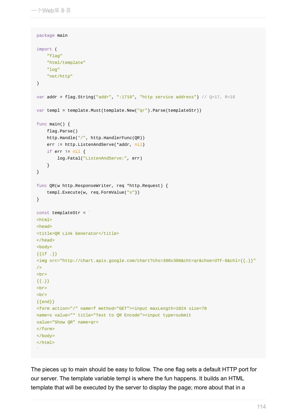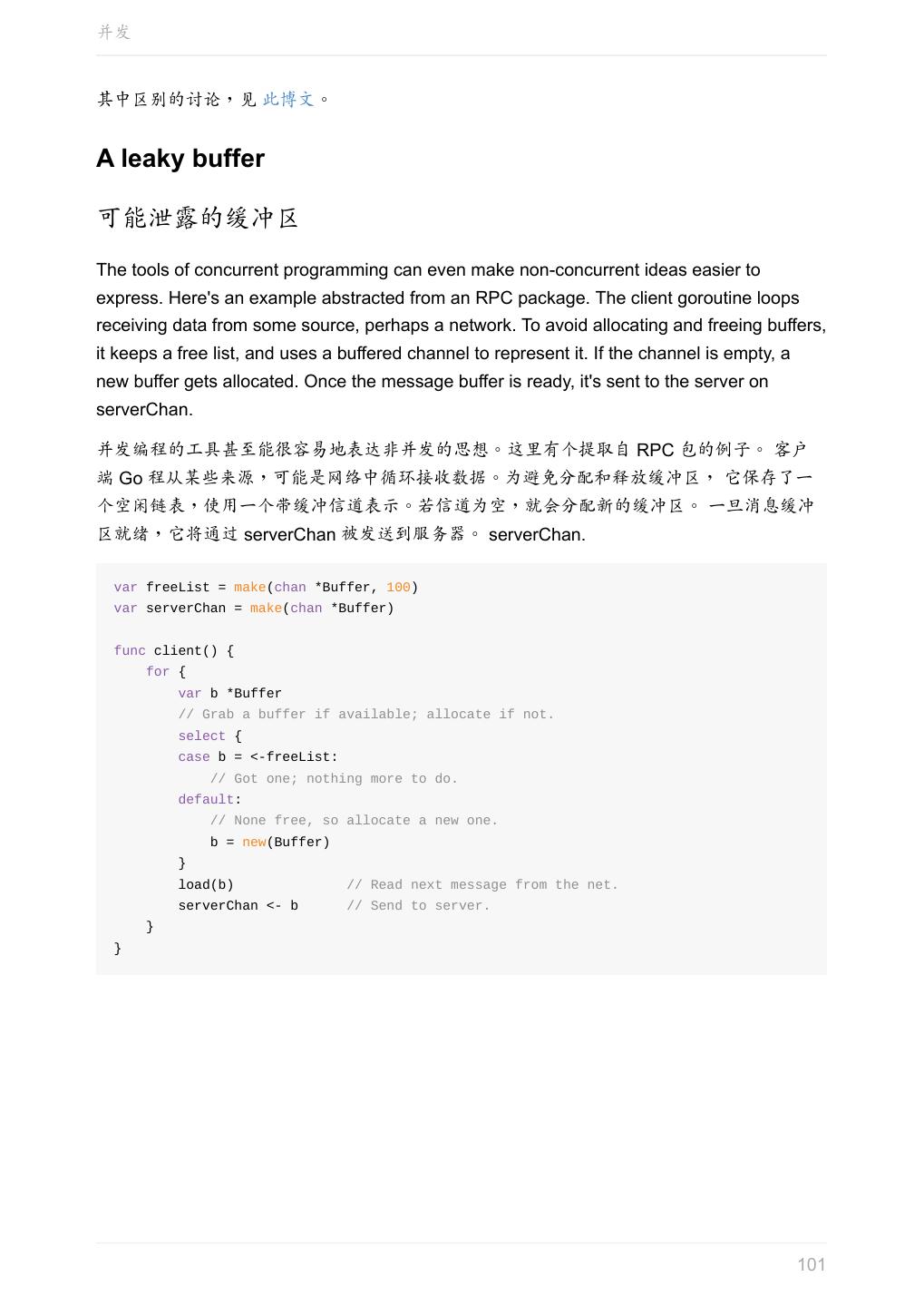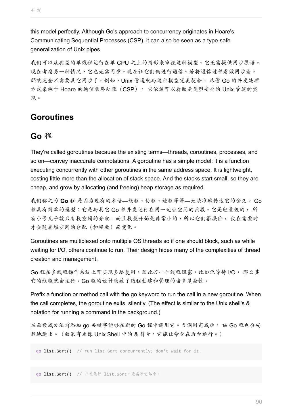 7 .引言 Go 包的源码 不仅是核心库,同时也是学习如何使用 Go 语言的示例源码。 此外,其中的一 些包还包含了可工作的,独立的可执行示例,你可以直接在 golang.org 网站上运行它们,比 如 这个例子 (单击文字 “示例” 来展开它)。如果你有任何关于某些问题如何解决,或某些东 西如何实现的疑问, 也可以从中获取相关的答案、思路以及后台实现。 7