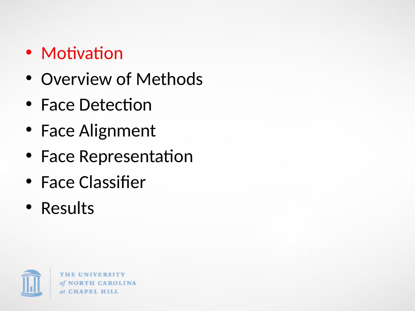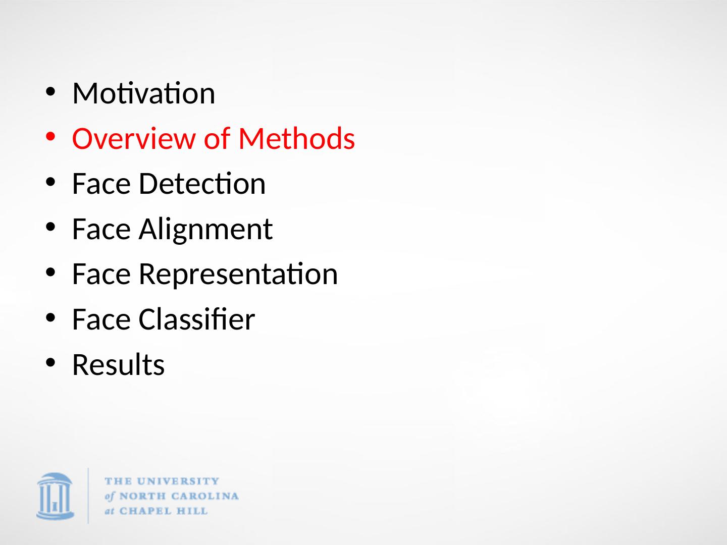 2 .Motivation Overview of Methods Face Detection Face Alignment Face Representation Face Classifier Results