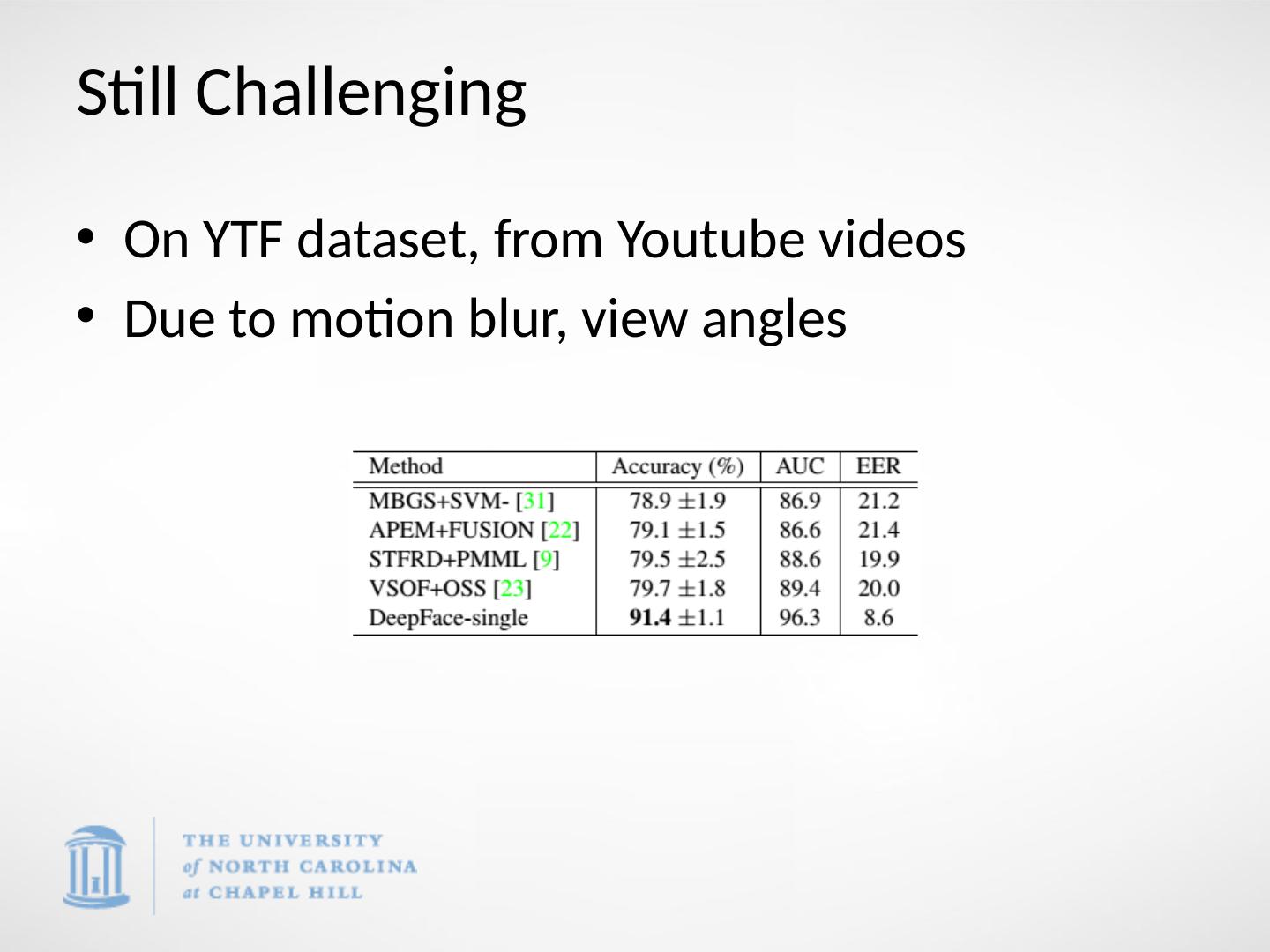 24 .Still Challenging On YTF dataset, from Youtube videos Due to motion blur, view angles