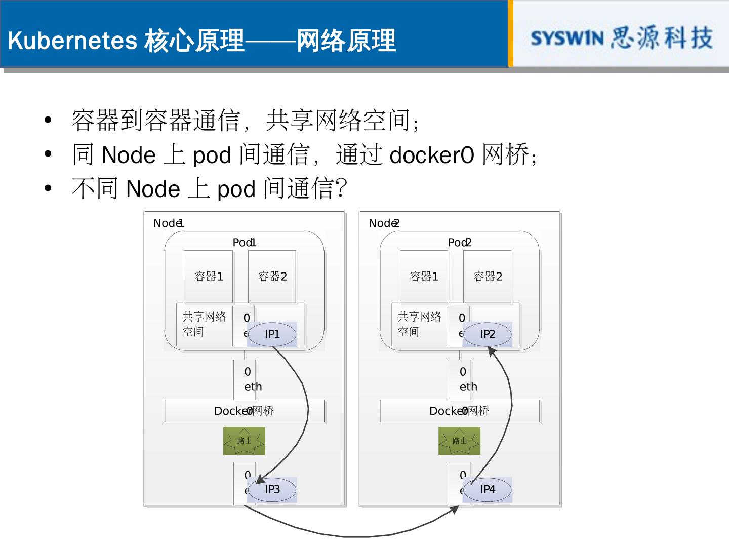15 .Kubernetes 核心原理 —— 网络原理 容器到容器通信,共享网络空间; 同 Node 上 pod 间通信,通过 docker0 网桥; 不同 Node 上 pod 间通信?