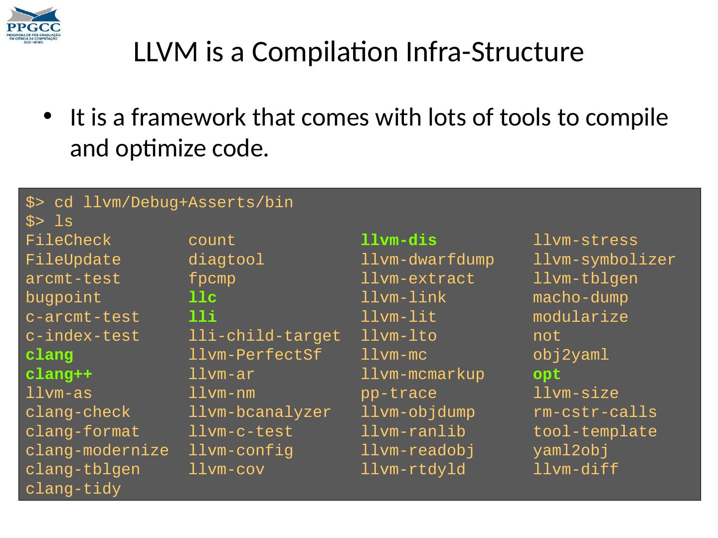 1 .Introduction to the LLVM Compilation Infra-Structure Fernando Magno Quintão Pereira fernando@dcc.ufmg.br