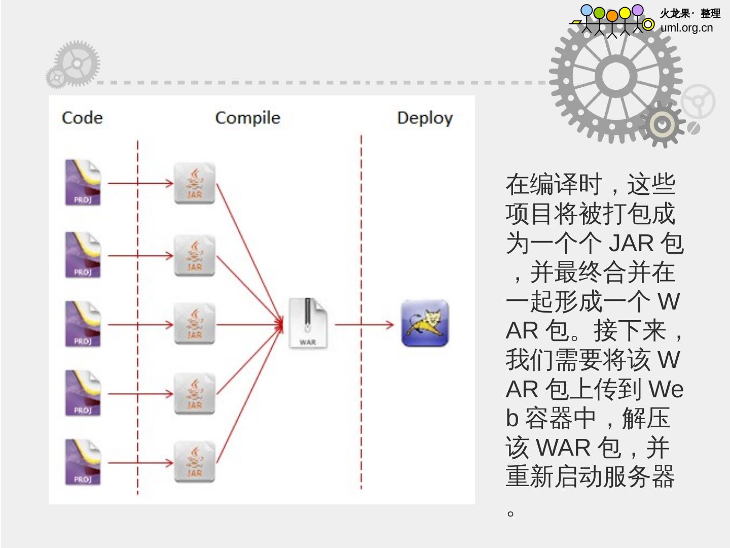 8 .在编译时,这些项目将被打包成为一个个 JAR 包,并最终合并在一起形成一个 WAR 包。接下来,我们需要将该 WAR 包上传到 Web 容器中,解压该 WAR 包,并重新启动服务器。