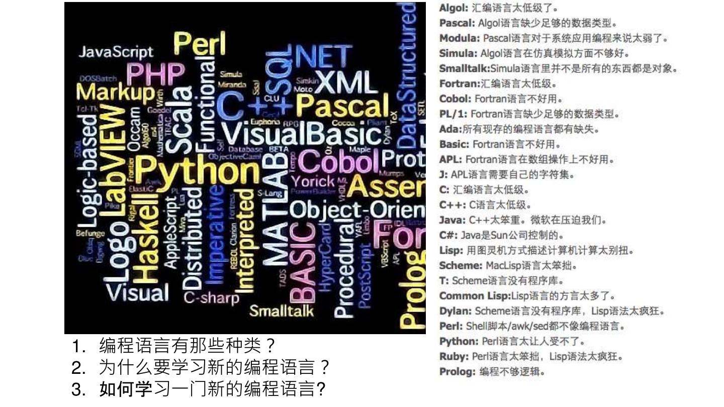4 .1. 编程语言有那些种类? 2. 为什么要学习新的编程语言? 3. 如何学习一门新的编程语言?