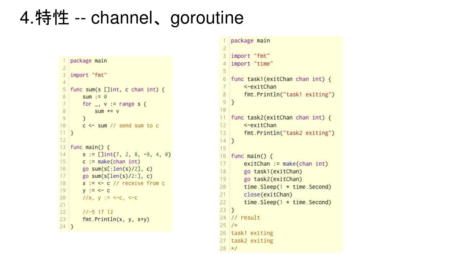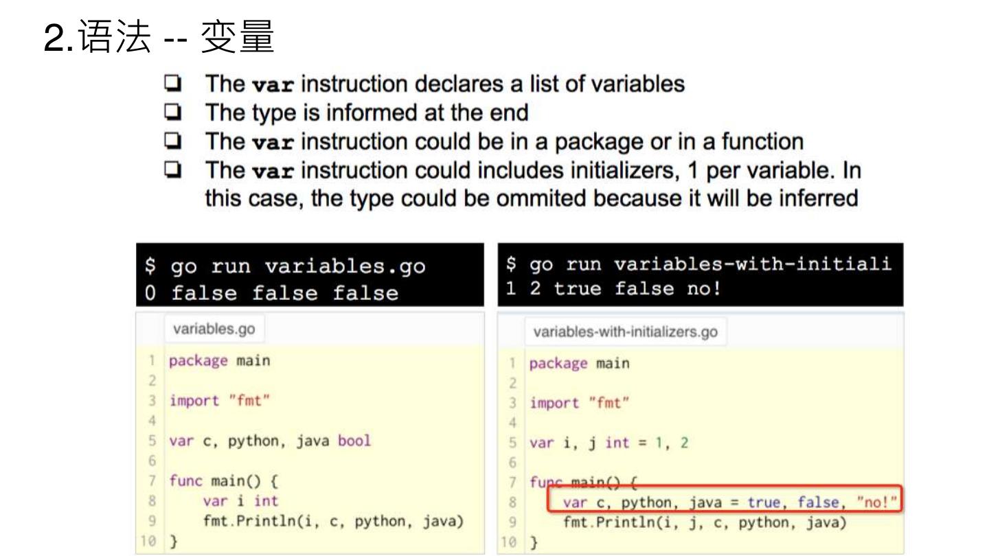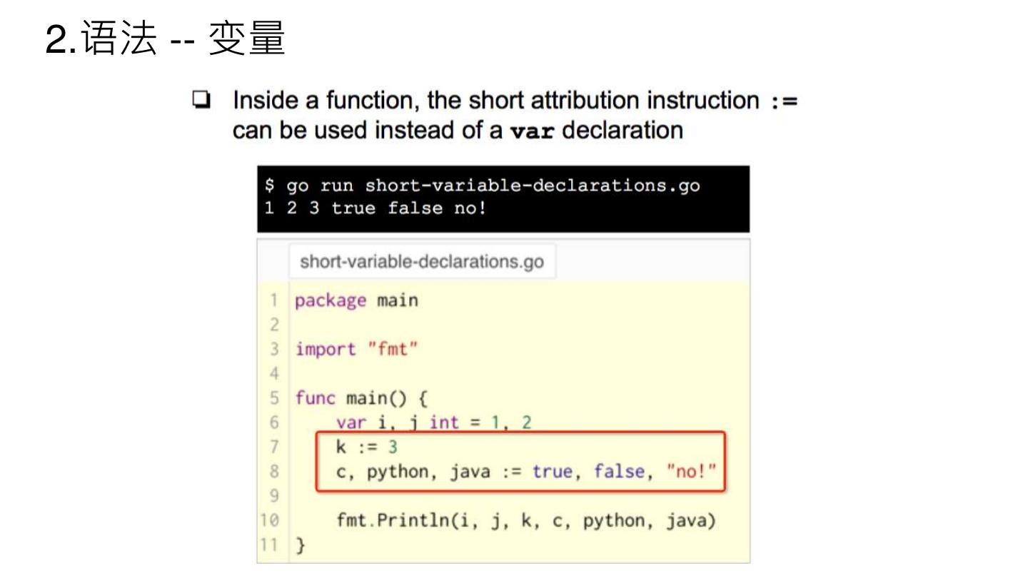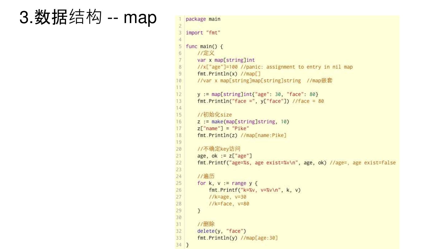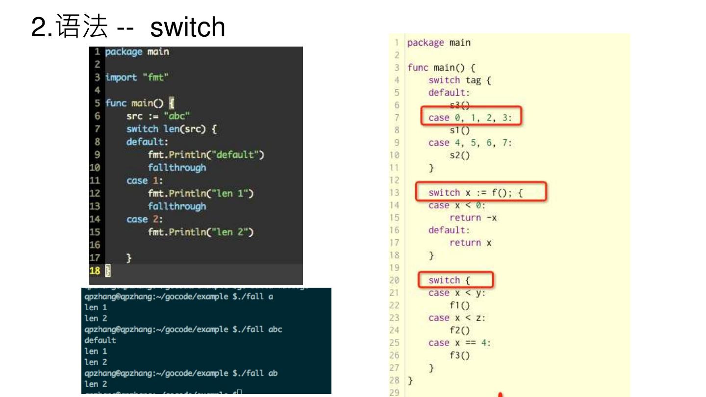 12 .2.语法 -- keywords(25个) for package range import select switch func case var fallthrough defer type break go const continue chan default map return struct if interface else goto
