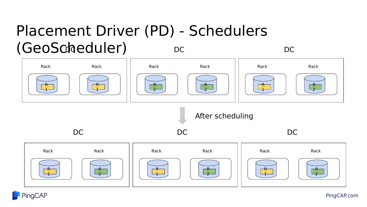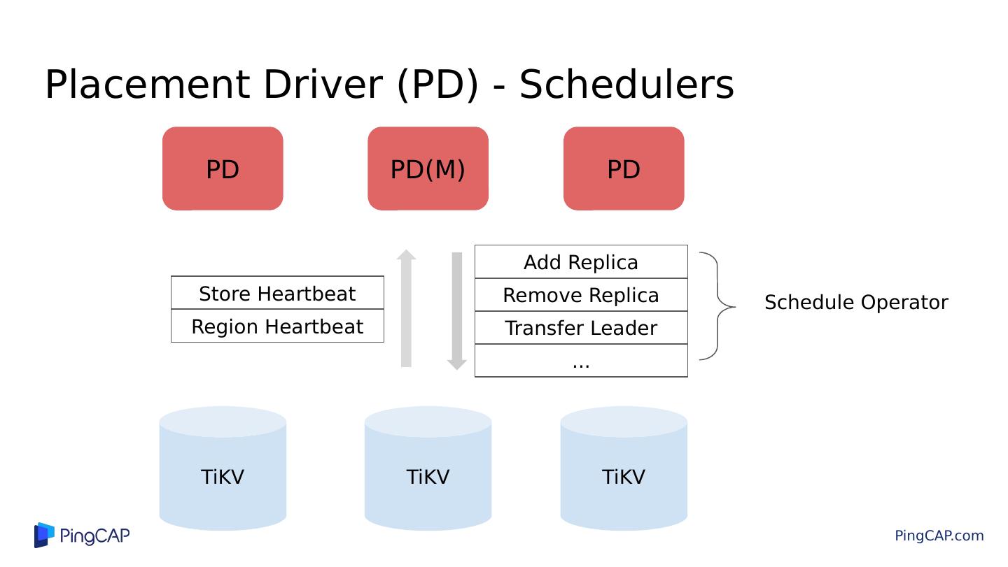28 .Placement Driver (PD) - Schedulers PD TiKV TiKV TiKV Store Heartbeat Region Heartbeat Add Replica Remove Replica Transfer Leader ... Schedule Operator PD(M) PD