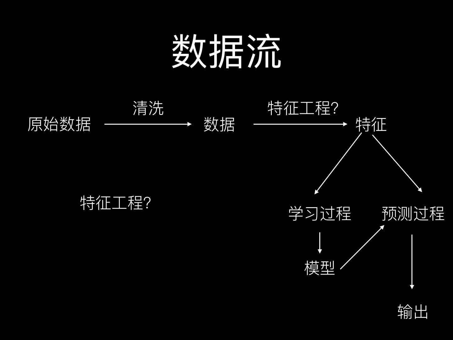 17 . 数据流 清洗 特征⼯工程? 原始数据 数据 特征 特征⼯工程? 学习过程 预测过程 模型 输出
