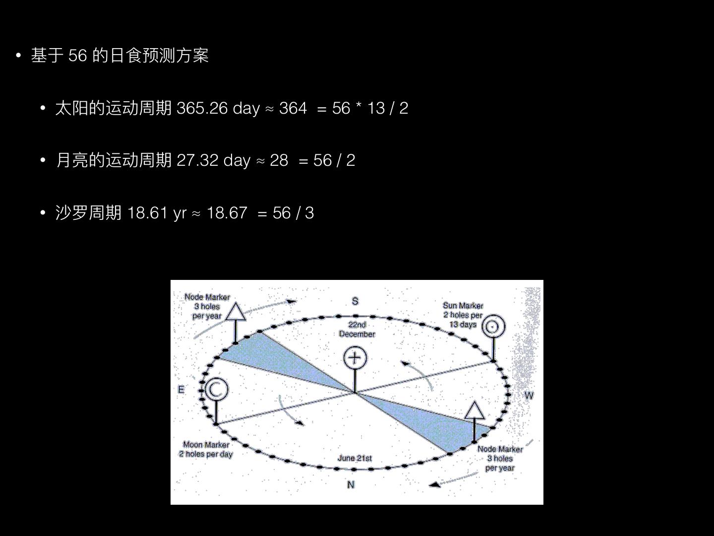 7 .Prosthaphaeresis:当时最新先进的算法 第⾕谷搜集了了⼤大量量的数据,并采⽤用了了当时最先进的计算⽅方法和星体 运⾏行行理理论,来整理理这些数据,制定星表 第⾕谷采⽤用 Prosthaphaeresis 来快速查表计算乘法,25年年后的 1614 年年,纳⽪皮尔发明对数后,该⽅方法逐渐被抛弃。 求 105 和 720 的乘积 1. 缩⼩小: 0.105 和 0.720 2. 求反余弦: cos(84°) = 0.105, cos(44°) = 0.720 3. 求⻆角的和差:84 + 44 = 128, 84 − 44 = 40 4. 查表求余弦平均:½[cos(128°) + cos(40°)] = ½[−0.616 + 0.766] = 0.075 5. 放⼤大:75,000. 6. 验证:75,600.
