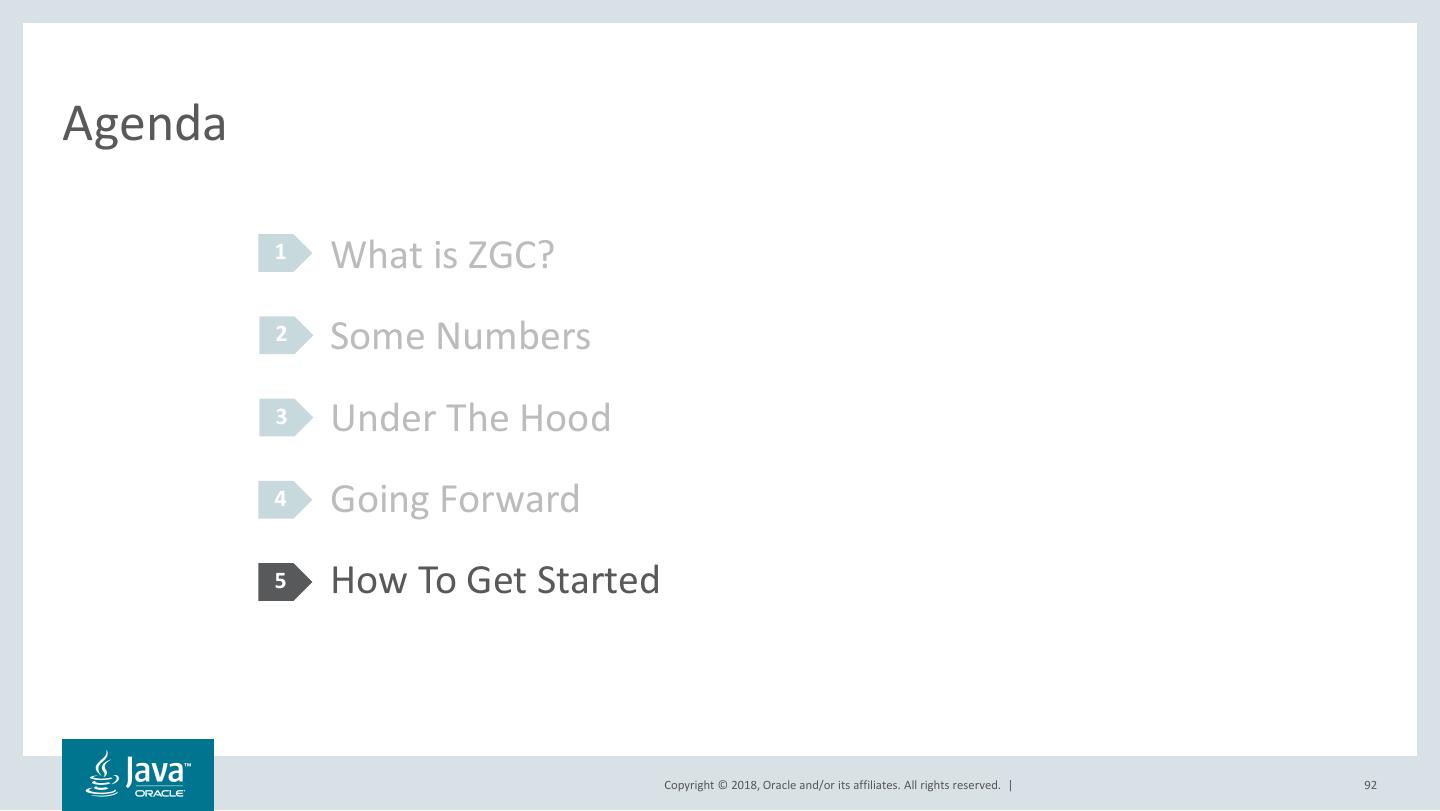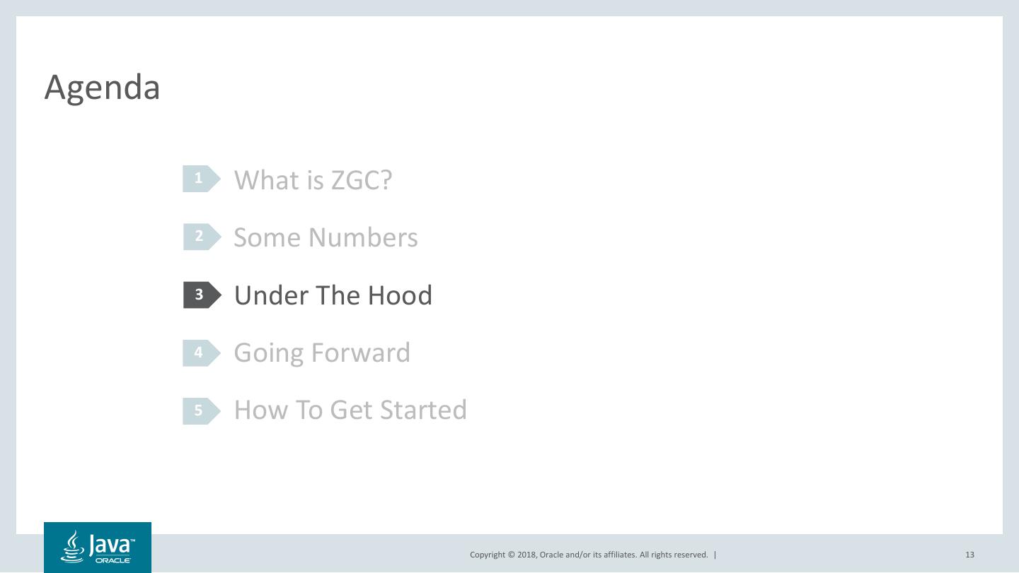 13 .Agenda 1 What is ZGC? 2 Some Numbers 3 Under The Hood 4 Going Forward 5 How To Get Started Copyright © 2018, Oracle and/or its affiliates. All rights reserved. | 13
