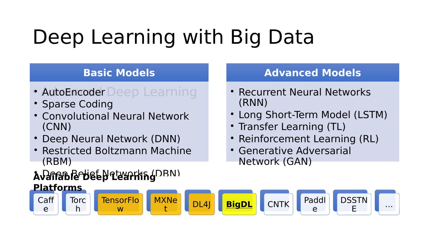 7 .Deep Learning with Big Data Basic Deep Learning Advanced Deep Learning Available Deep Learning Platforms