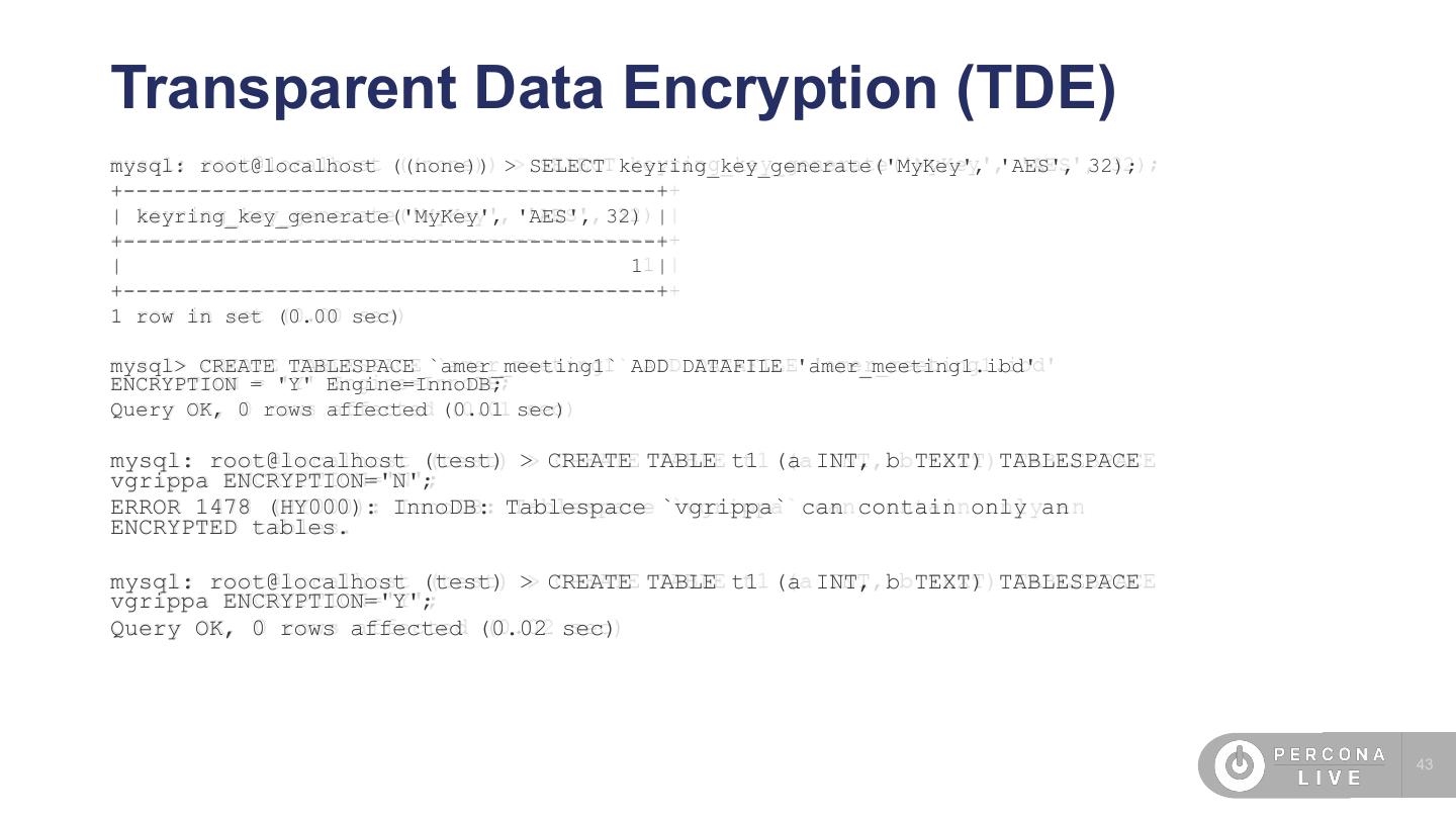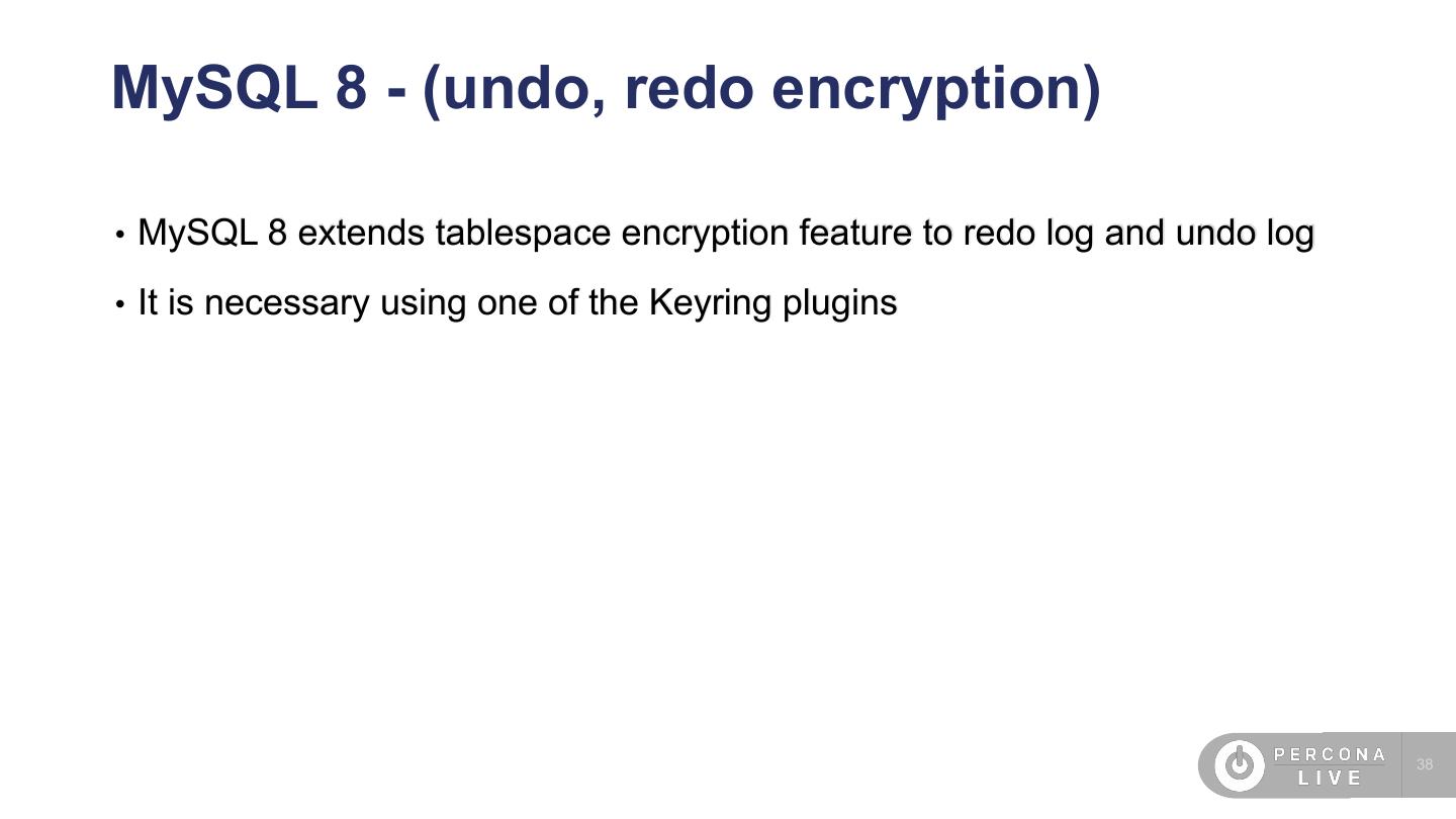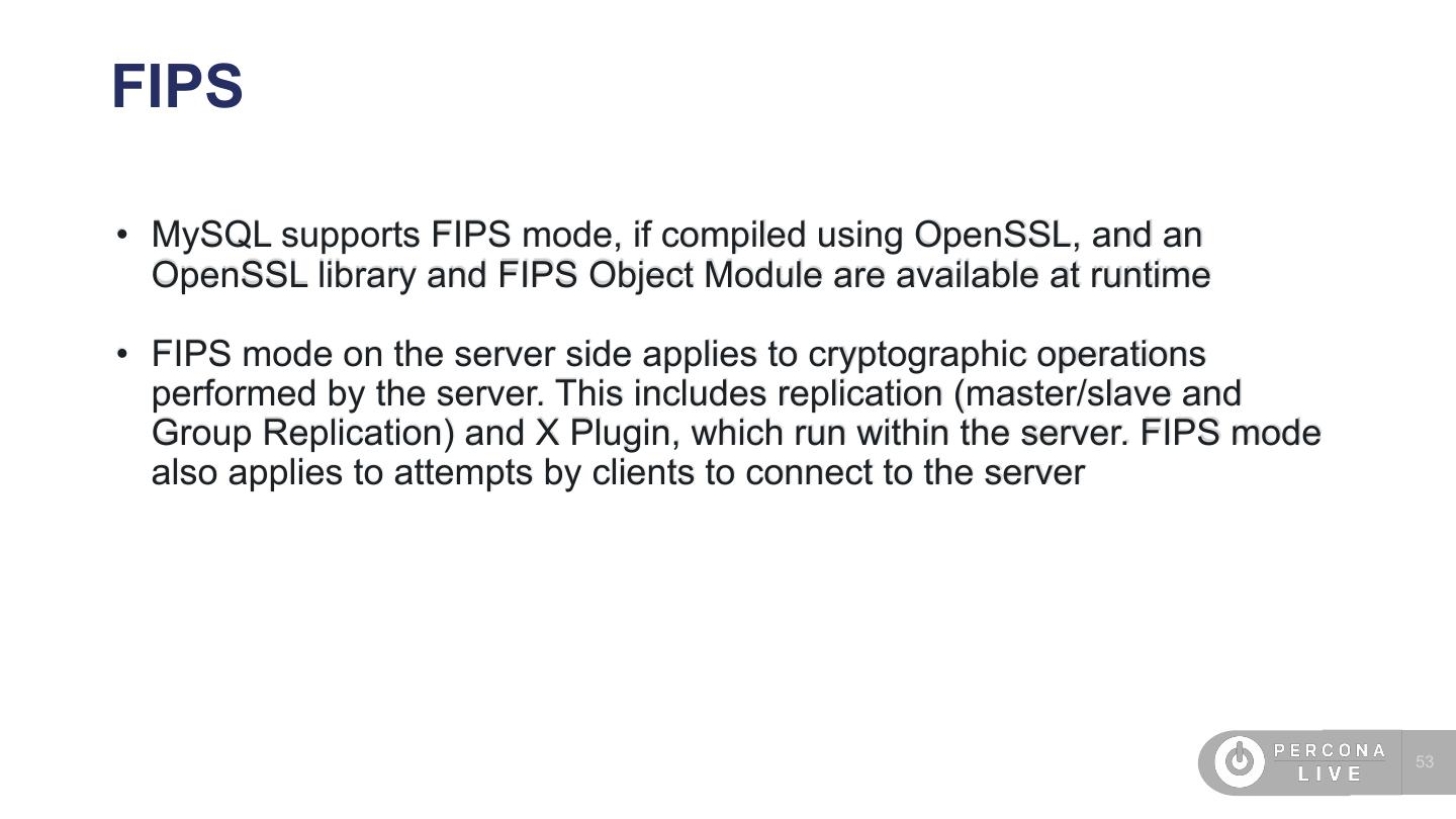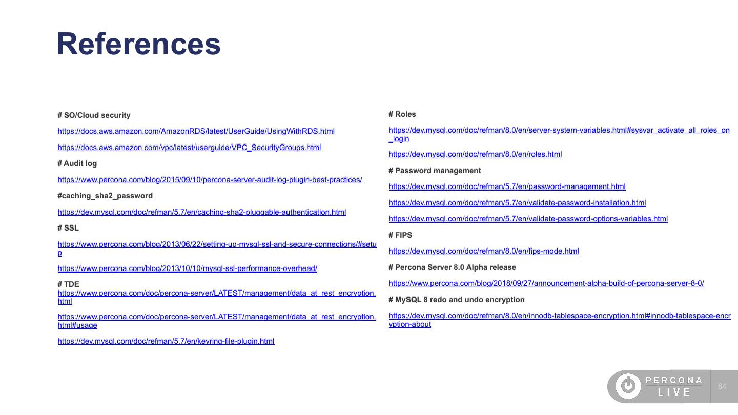 4 .Agenda • SO/Cloud security • SSL • Password management • Audit plugin • Percona Server encryption features • MySQL 8 features (undo, redo encryption) • TDE • New caching_sha2_password • FIPS mode • Roles 4