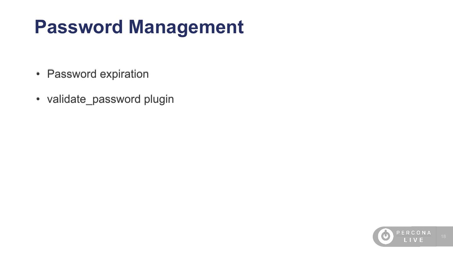 18 .Password Management • Password expiration • validate_password plugin 18