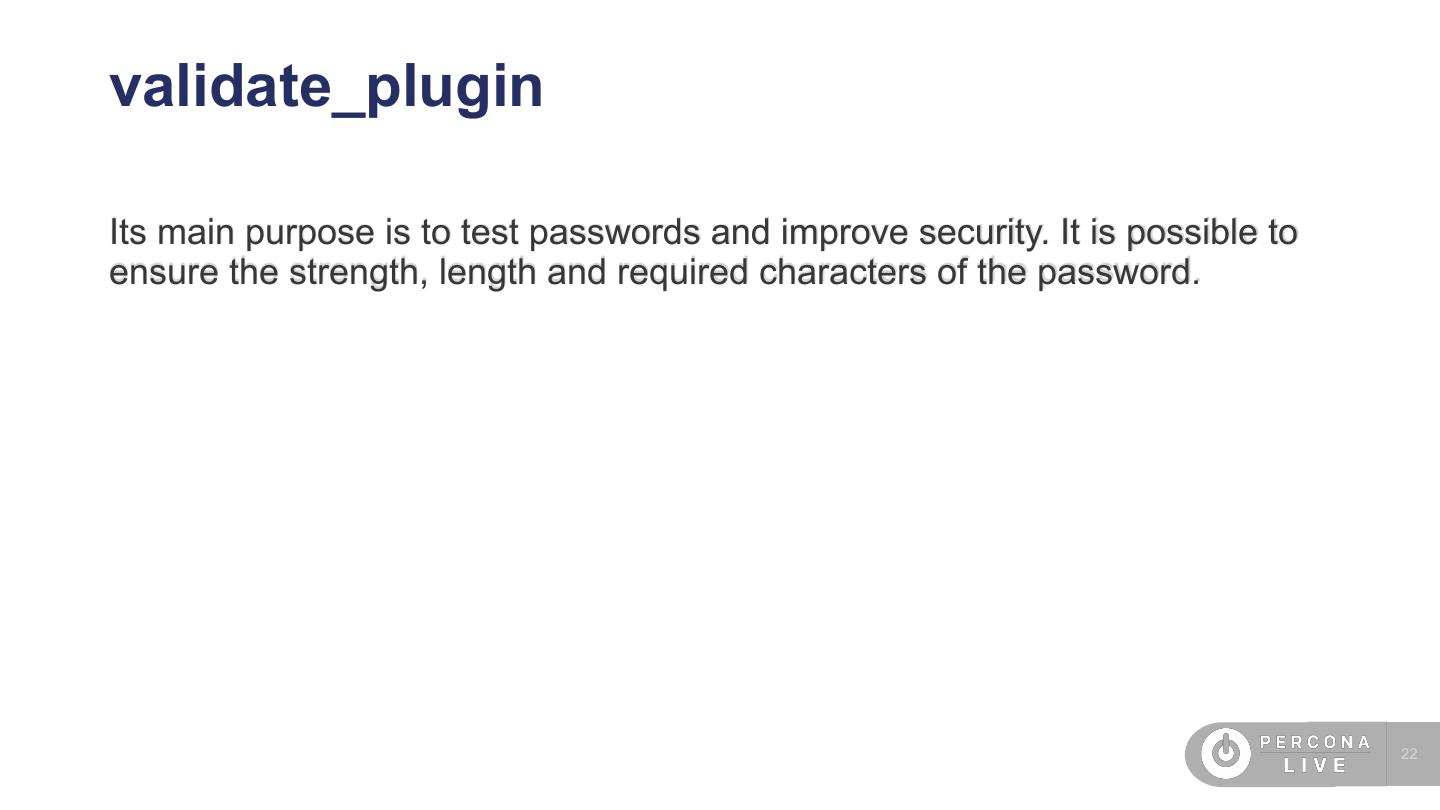 22 .validate_plugin Its main purpose is to test passwords and improve security. It is possible to ensure the strength, length and required characters of the password. 22