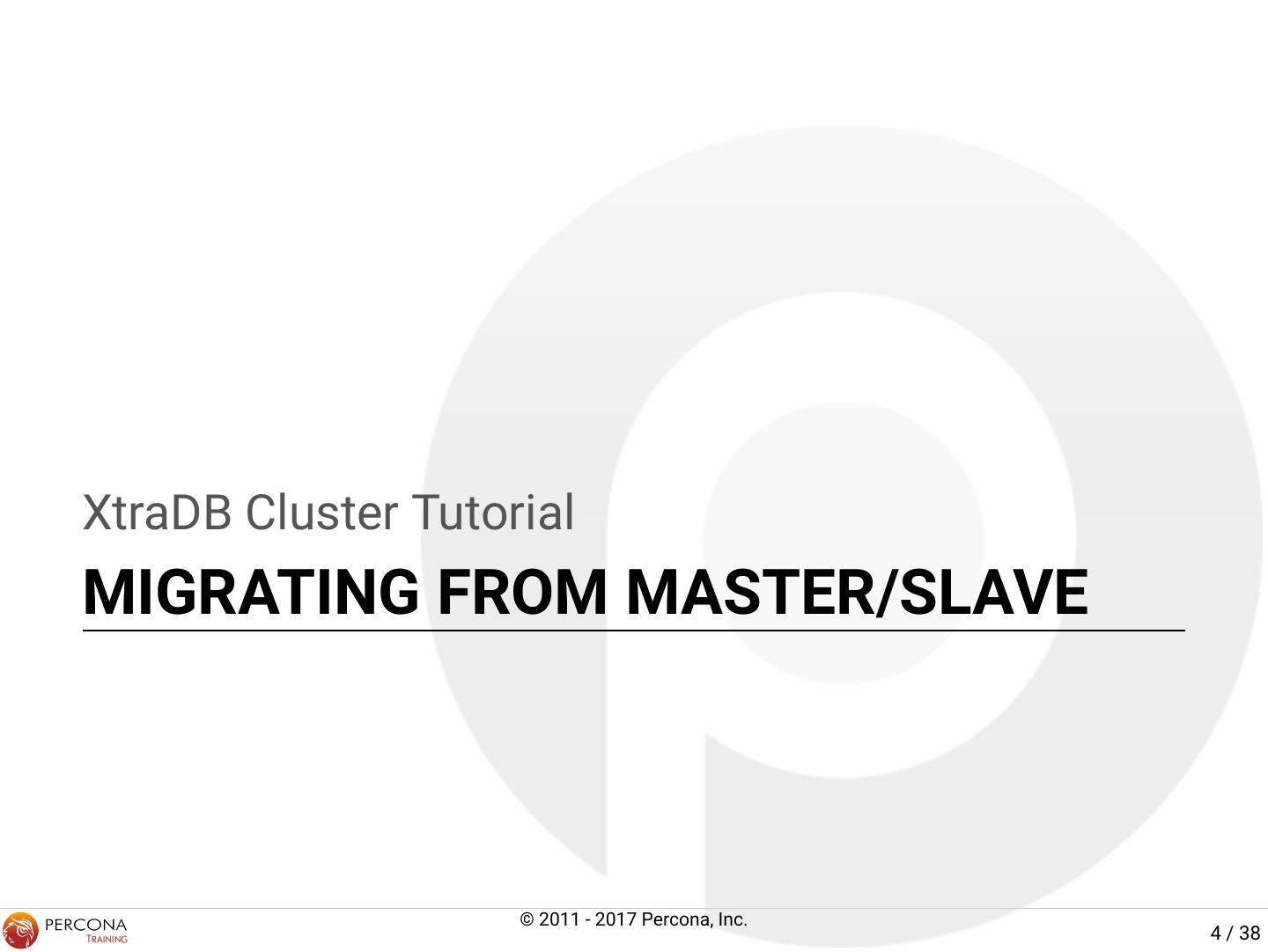 4 .XtraDB Cluster Tutorial MIGRATING FROM MASTER/SLAVE © 2011 - 2017 Percona, Inc. 4 / 38