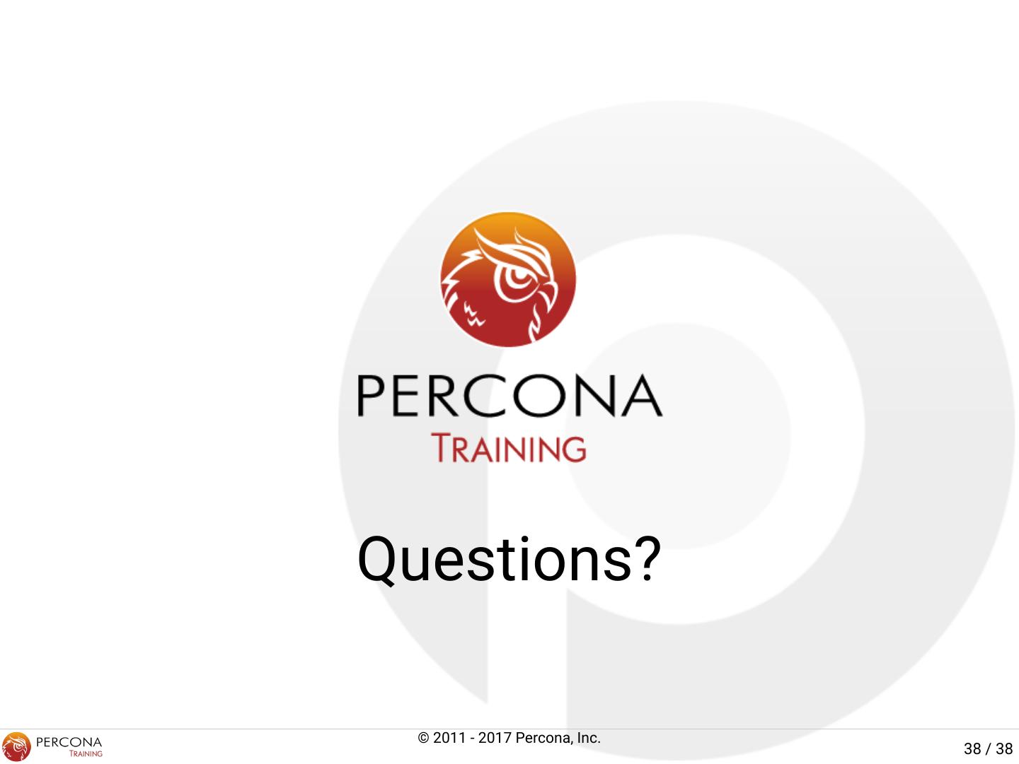 19 .Where are We Now? © 2011 - 2017 Percona, Inc. 19 / 38