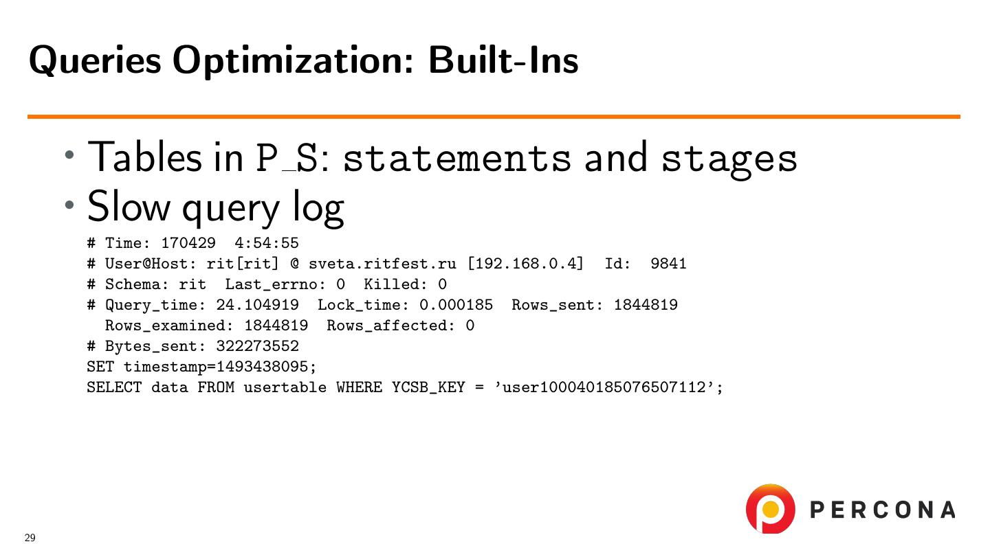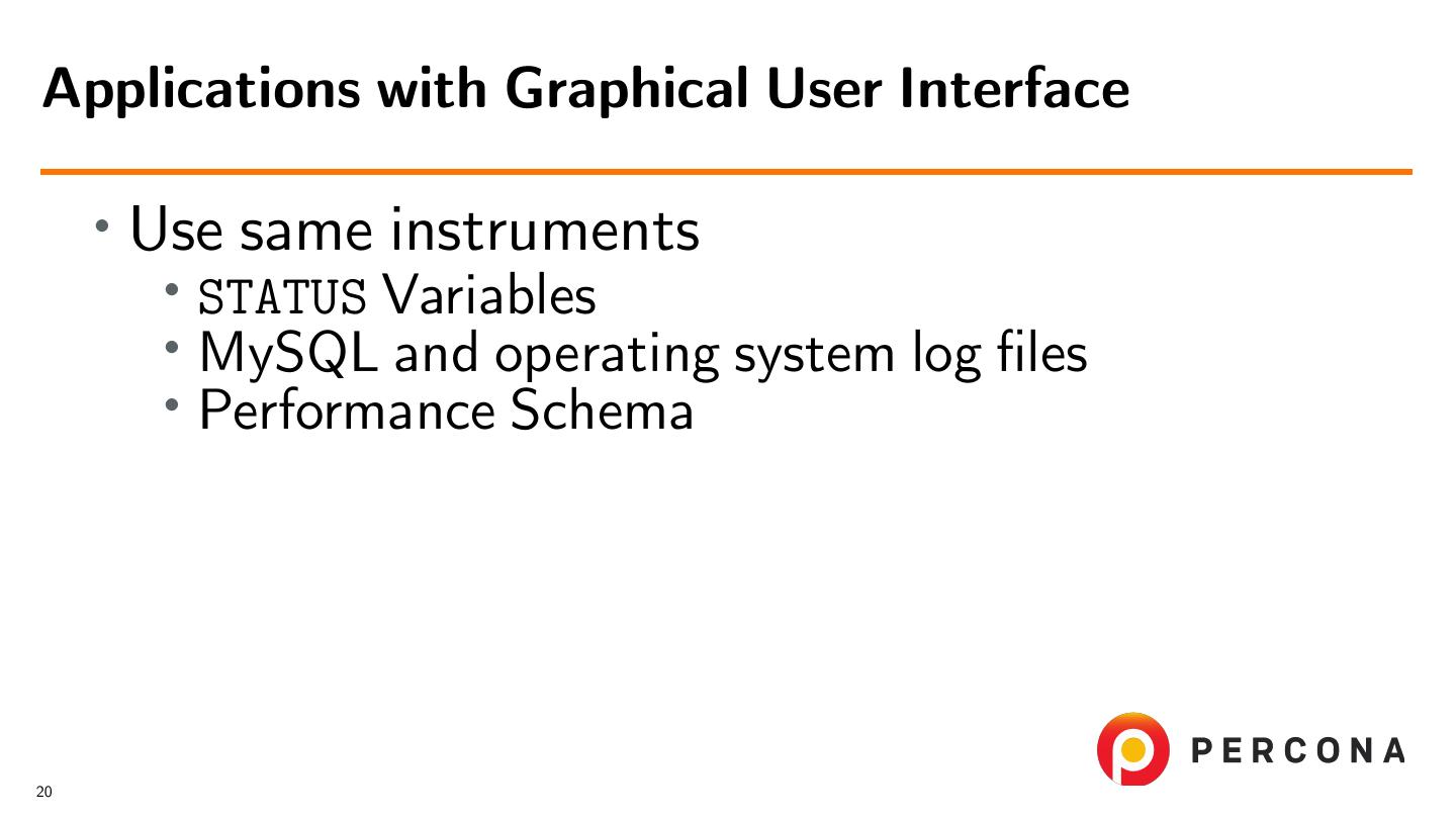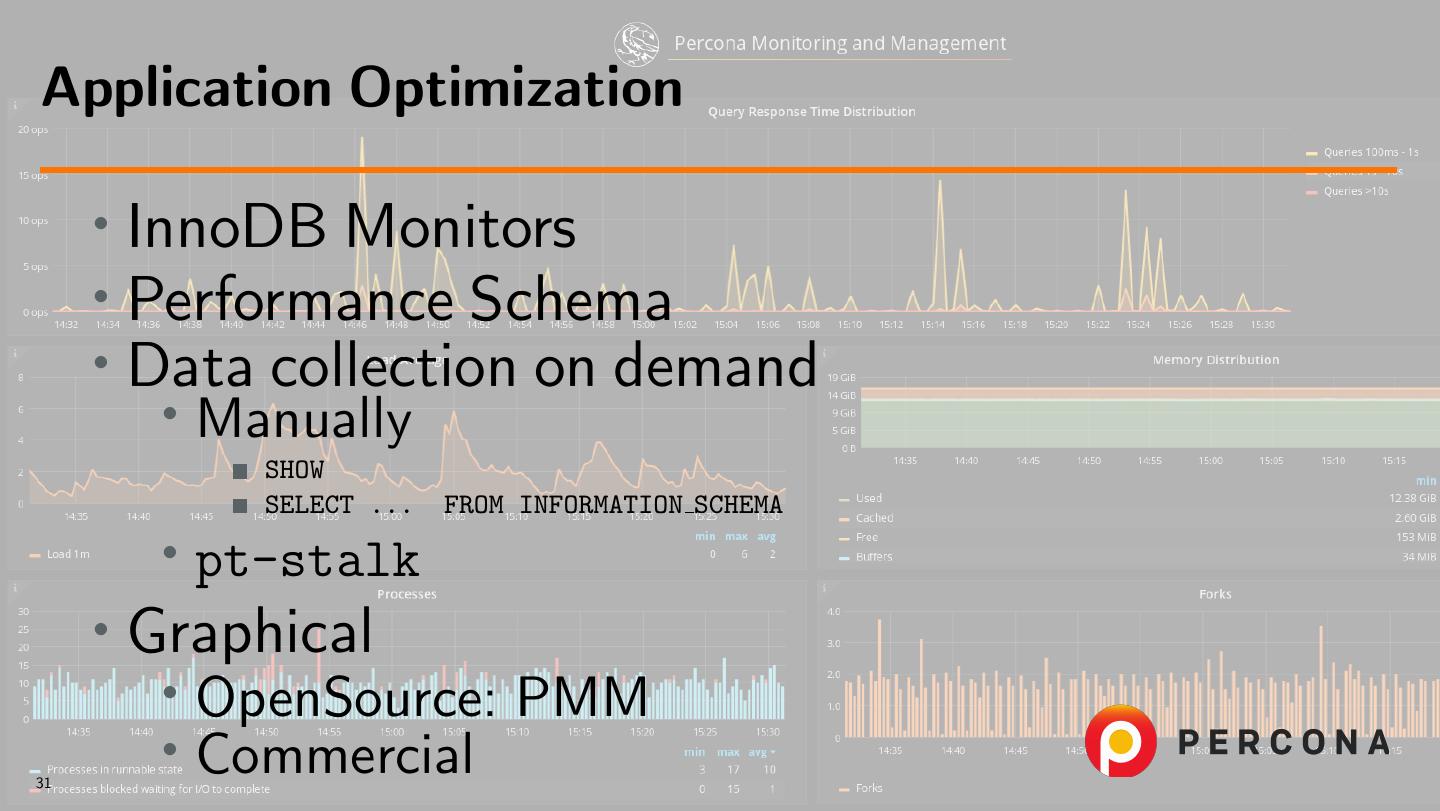 在MySQL疑难解答网络研讨会系列中,我介绍了许多监控和日志记录工具,例如: