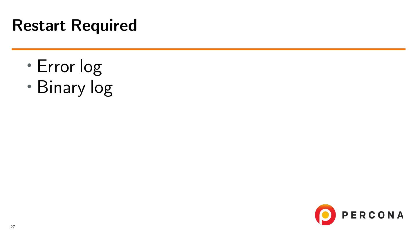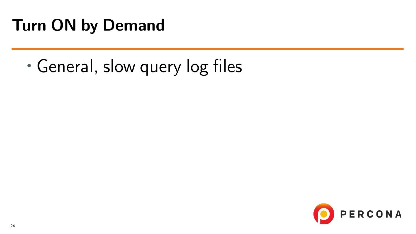 23 .Log Files Require Disk Space • General or binary log can use all free space • Imagine write load 40GB/hour? • Rotate policy 15