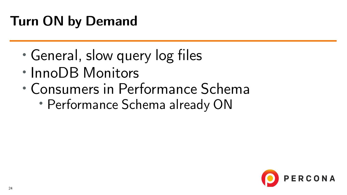 这就是许多人面临的冲突。MySQLServer用户尝试探索这些监控工具,发现它们减慢了安装速度,并关闭了它们。这是不幸的。如果能够帮助您解决问题的工具关闭,您将无法获得帮助您了解问题发生的时间、方式和原因的良好和必要信息。在最好的情况下,您将重新启用检测并等待下一次灾难发生。在最坏的情况下,如果解决问题或不解决问题,您可以尝试不同的修复选项,而不需要任何实际知识。
