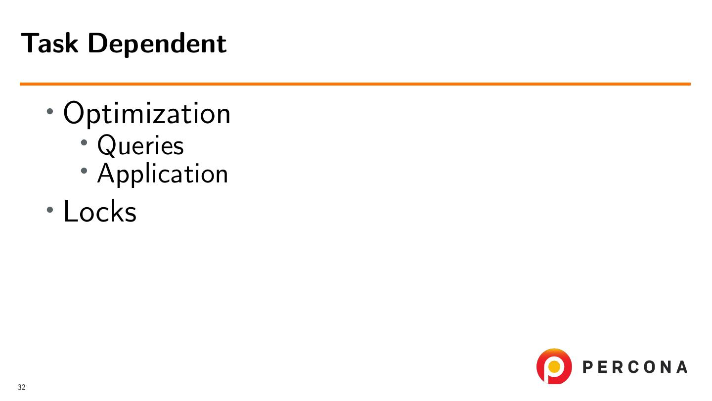 27 .Memory • Performance Schema • Information Schema • Some queries require too much memory MySQL bug #72322 Fixed in 5.5.44, 5.6.25, 5.7.8, 8.0 16