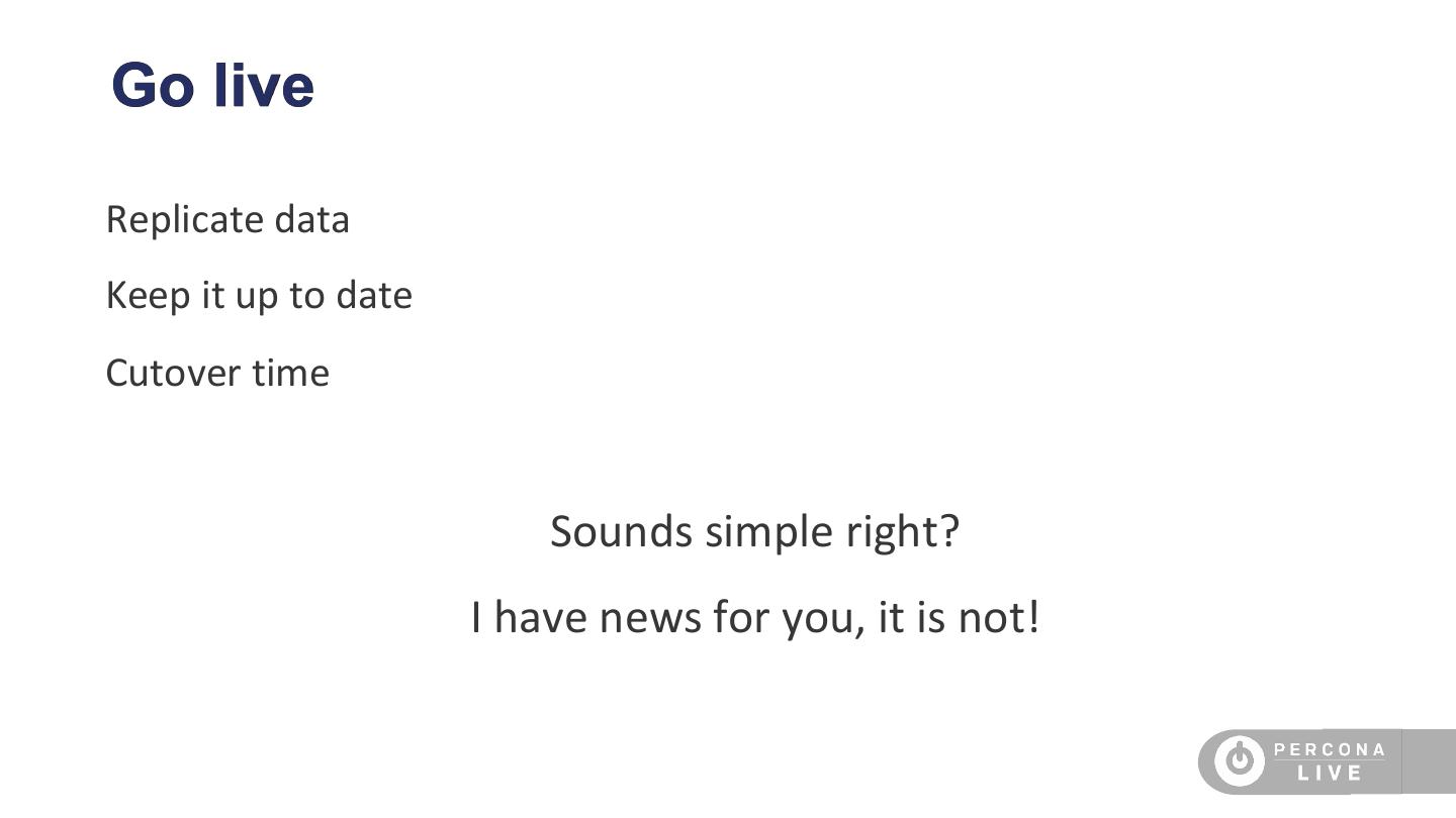 16 .Go live Replicate data Keep it up to date Cutover time Sounds simple right? I have news for you, it is not!