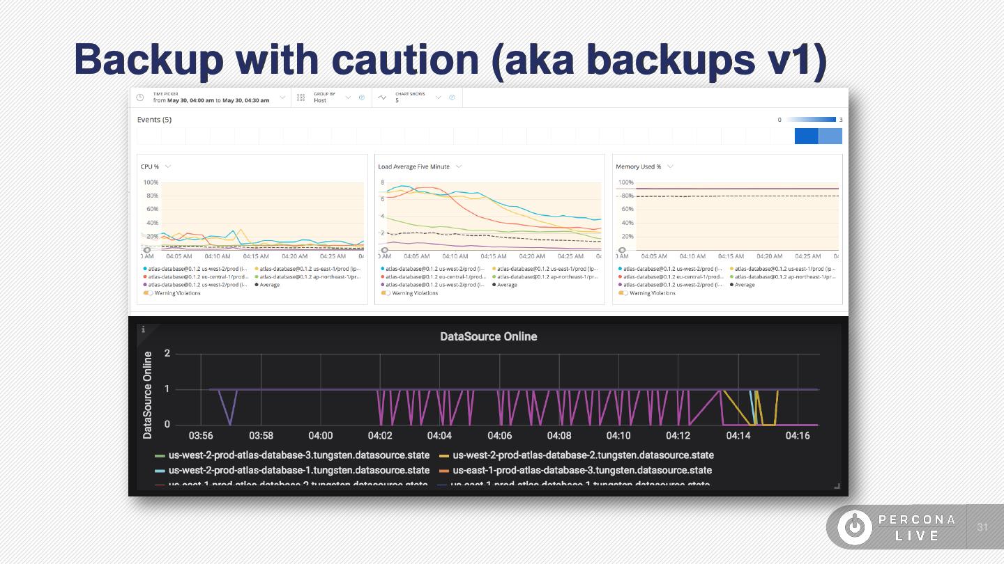 20 .Performing backups Leverage standalone replicator Backup with xtrabackup Compress and upload to S3 Optional delay on replicator 20