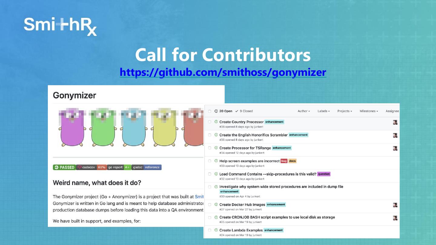在演示结束时,我们将讨论如何使用Docker构建我们的基础设施,以将Gonymizer装箱,并使用Kubernetes安排匿名化和加载我们的测试环境。本次讨论针对在医疗保健领域工作的任何人,该领域收集的数据包含phi和/或pii,并由hipaa进行管理。